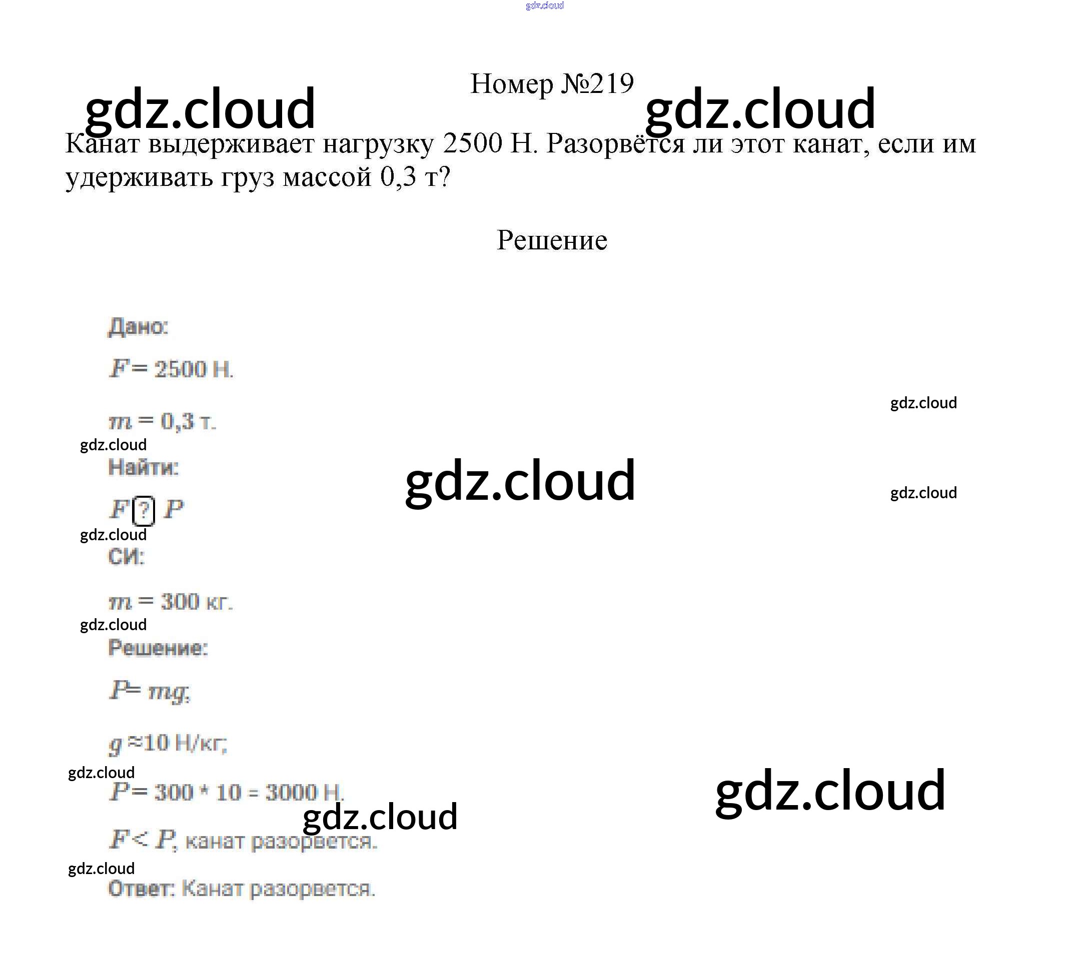 Ответ на задание 219 Сборник вопросов и задач Физика за 7, 8, 9 (седьмой, восьмой, девятый) класс Марон, Позойский Вертикаль 2013