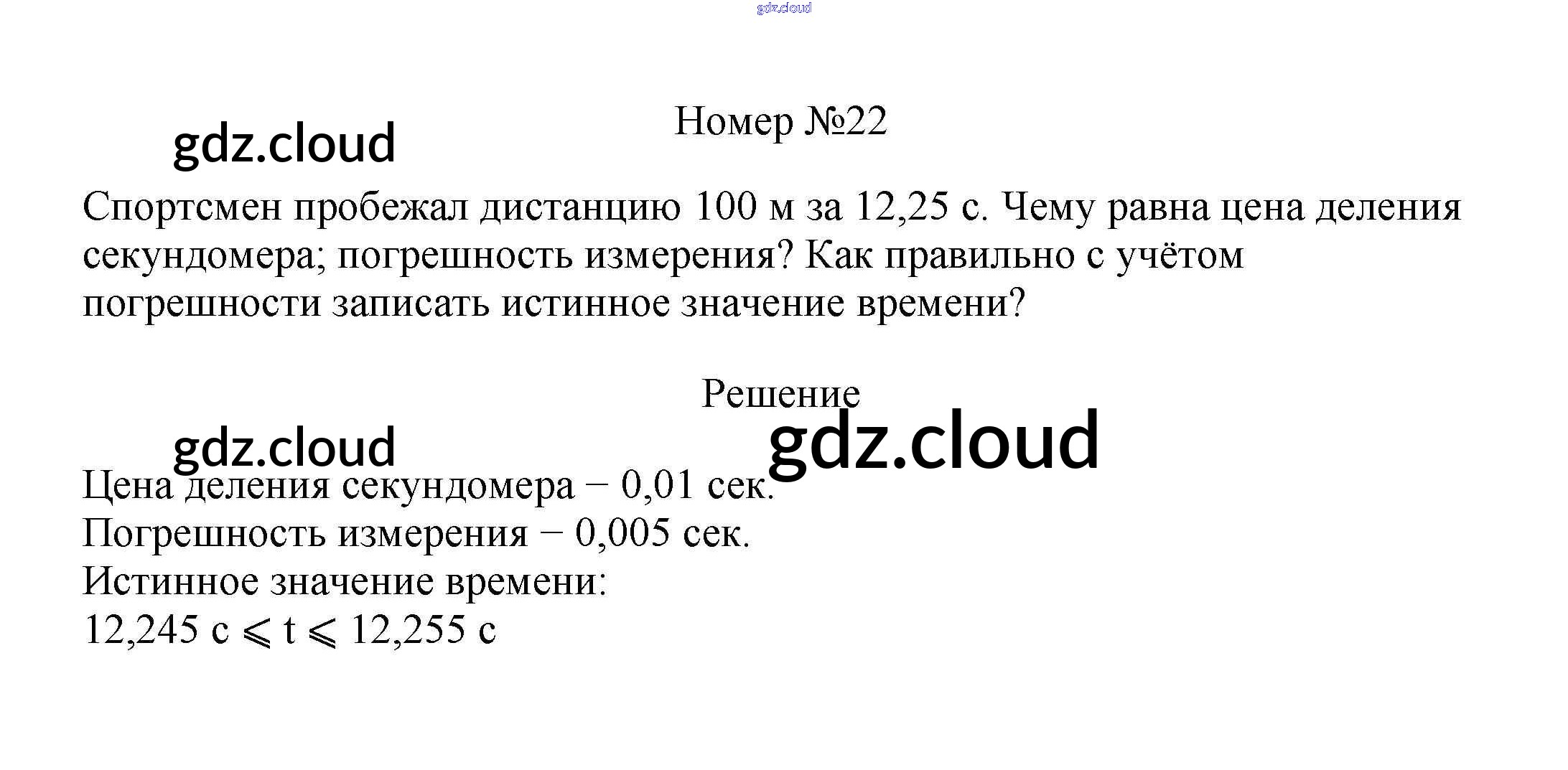 Ответ на задание 22 Сборник вопросов и задач Физика за 7, 8, 9 (седьмой, восьмой, девятый) класс Марон, Позойский Вертикаль 2013 ФГОС онлайн и без номера телефона.