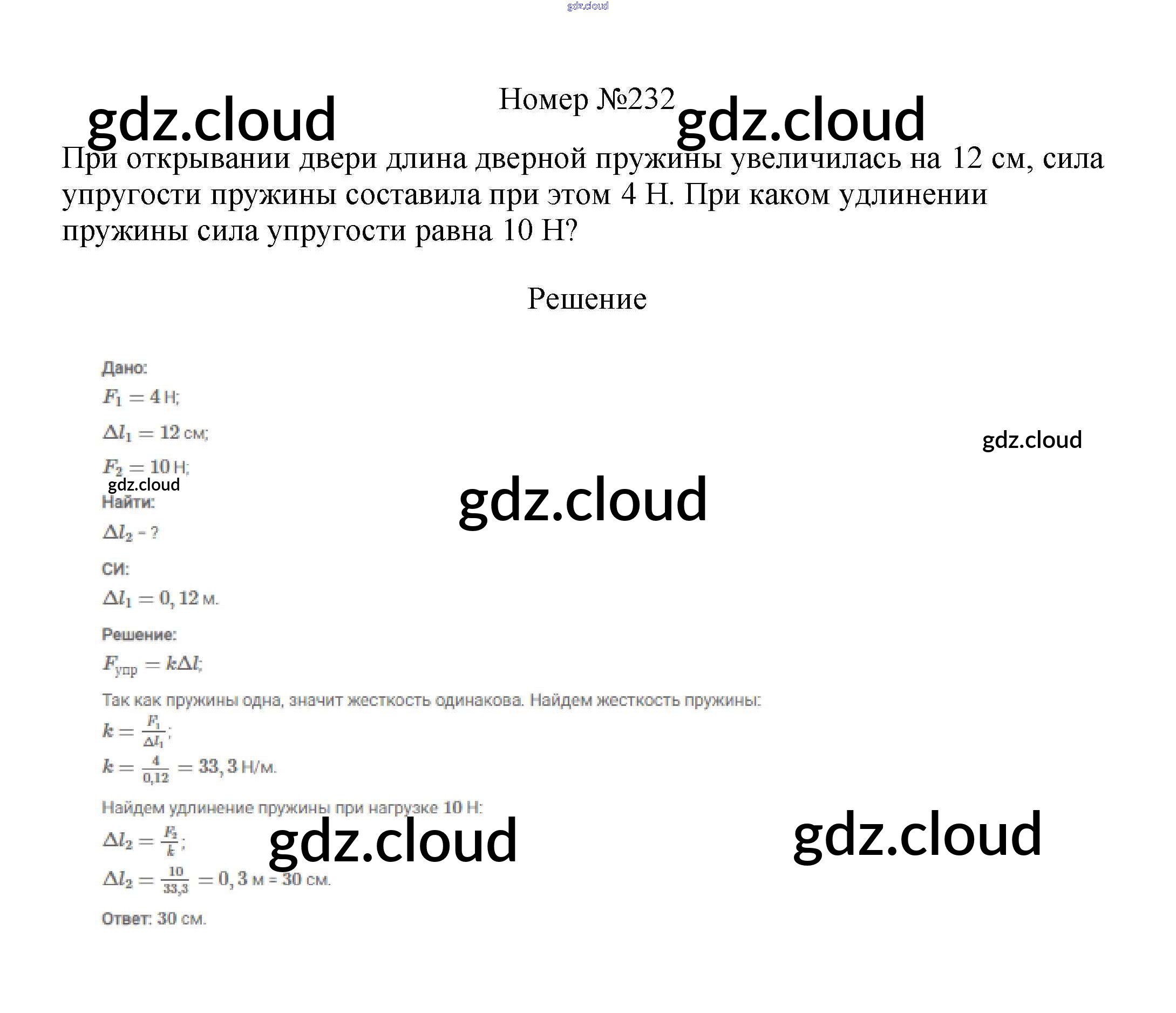 Ответ на задание 232 Сборник вопросов и задач Физика за 7, 8, 9 (седьмой, восьмой, девятый) класс Марон, Позойский Вертикаль 2013