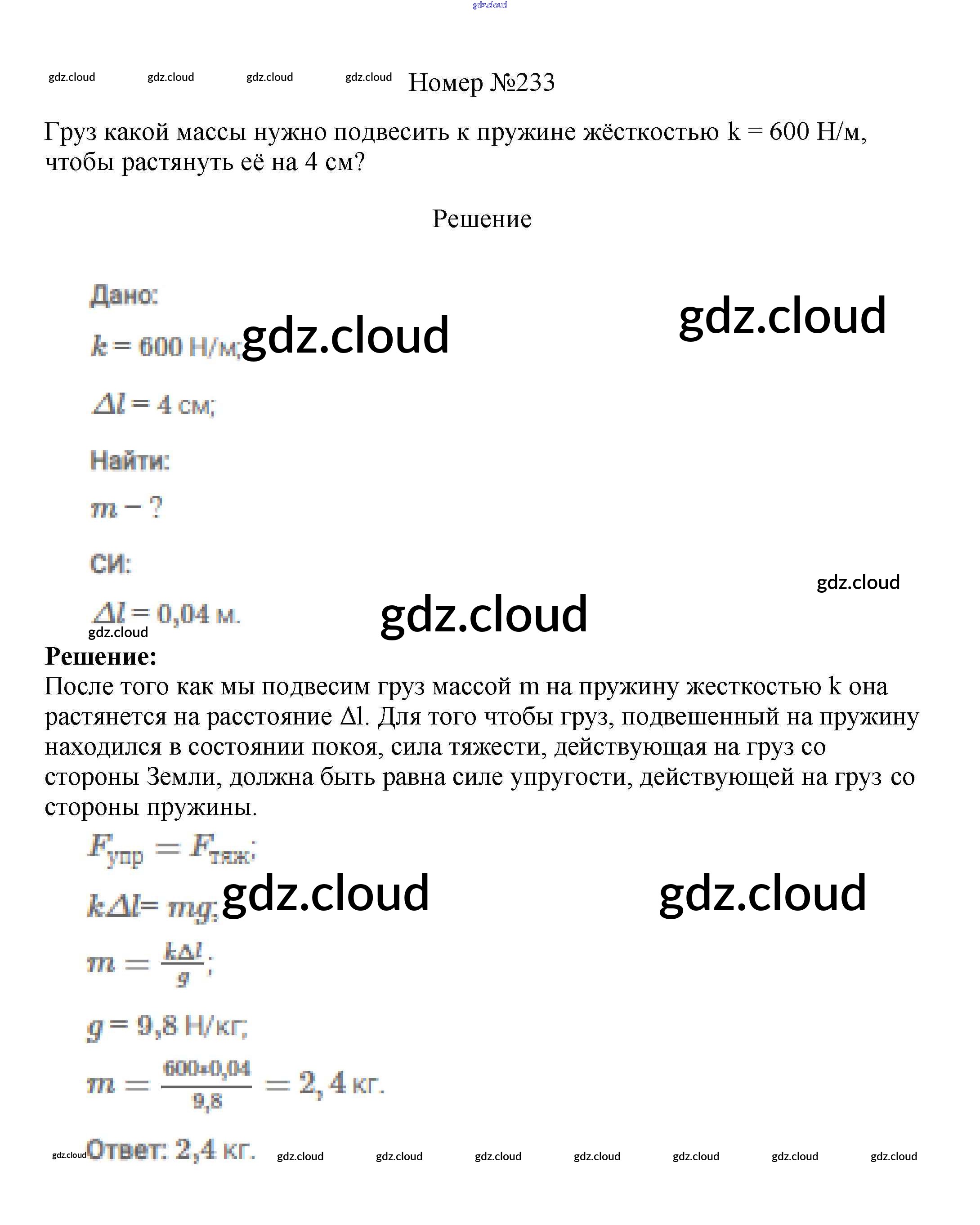 Ответ на задание 233 Сборник вопросов и задач Физика за 7, 8, 9 (седьмой, восьмой, девятый) класс Марон, Позойский Вертикаль 2013