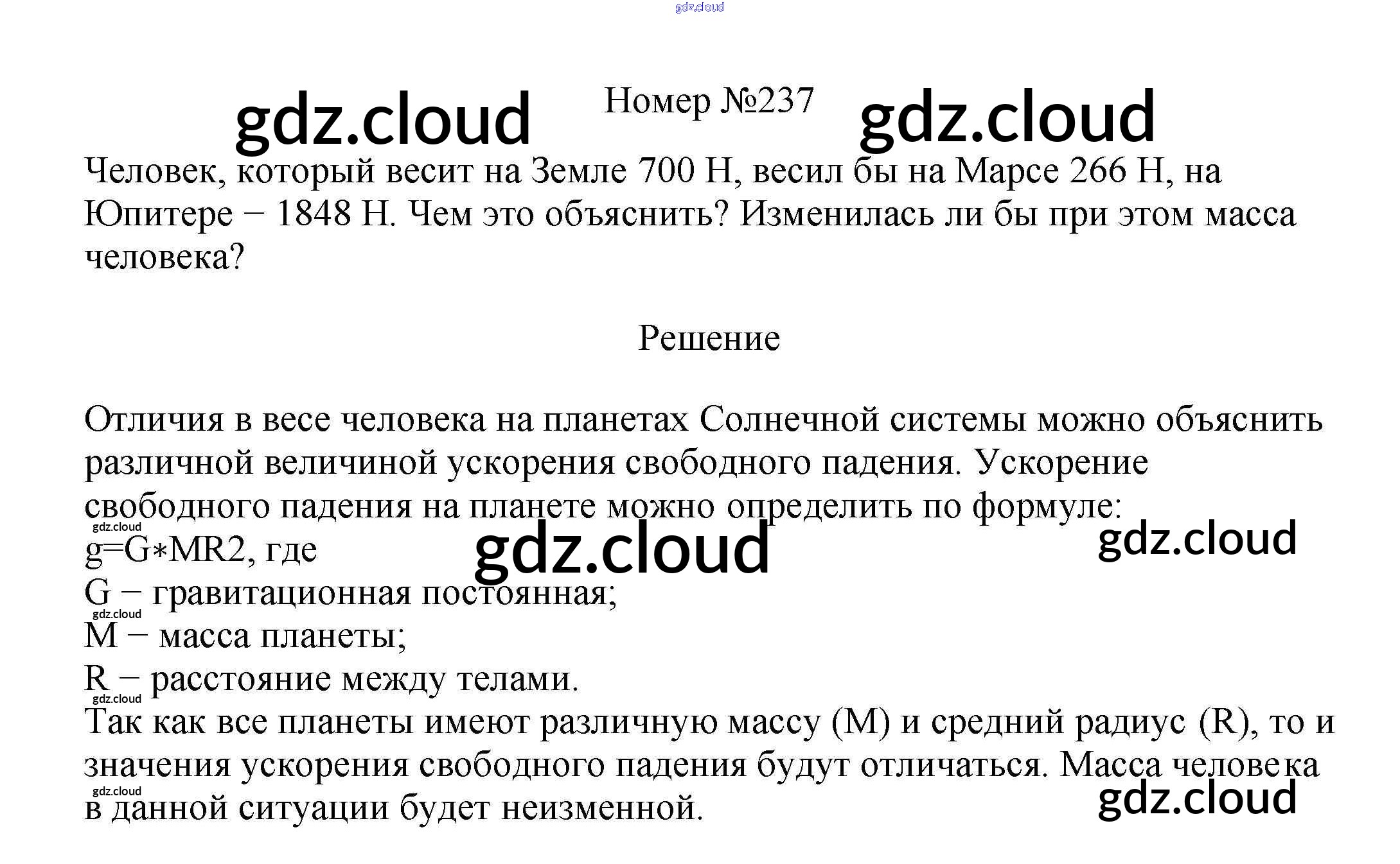 Ответ на задание 237 Сборник вопросов и задач Физика за 7, 8, 9 (седьмой, восьмой, девятый) класс Марон, Позойский Вертикаль 2013