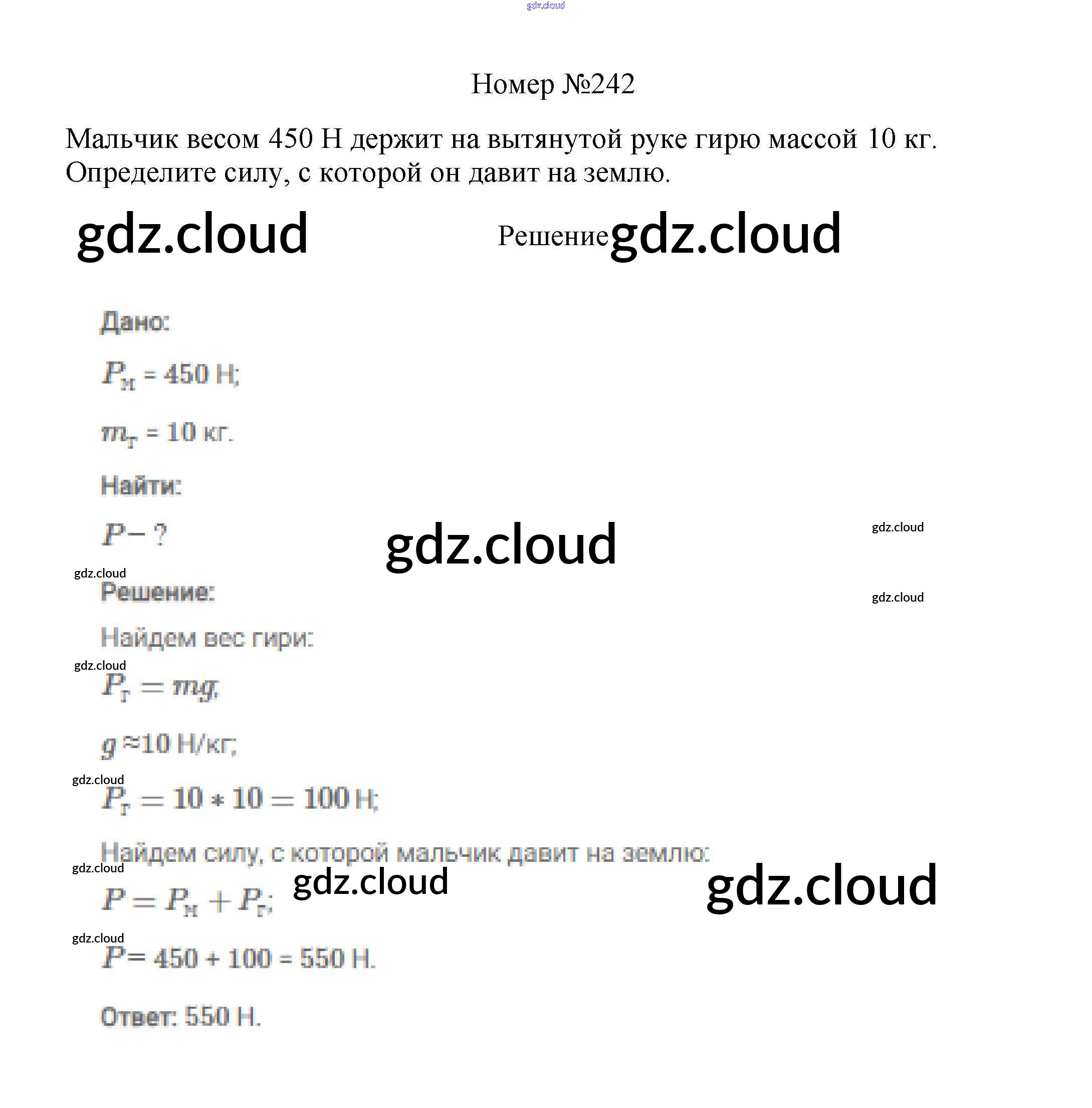 Ответ на задание 242 Сборник вопросов и задач Физика за 7, 8, 9 (седьмой, восьмой, девятый) класс Марон, Позойский Вертикаль 2013