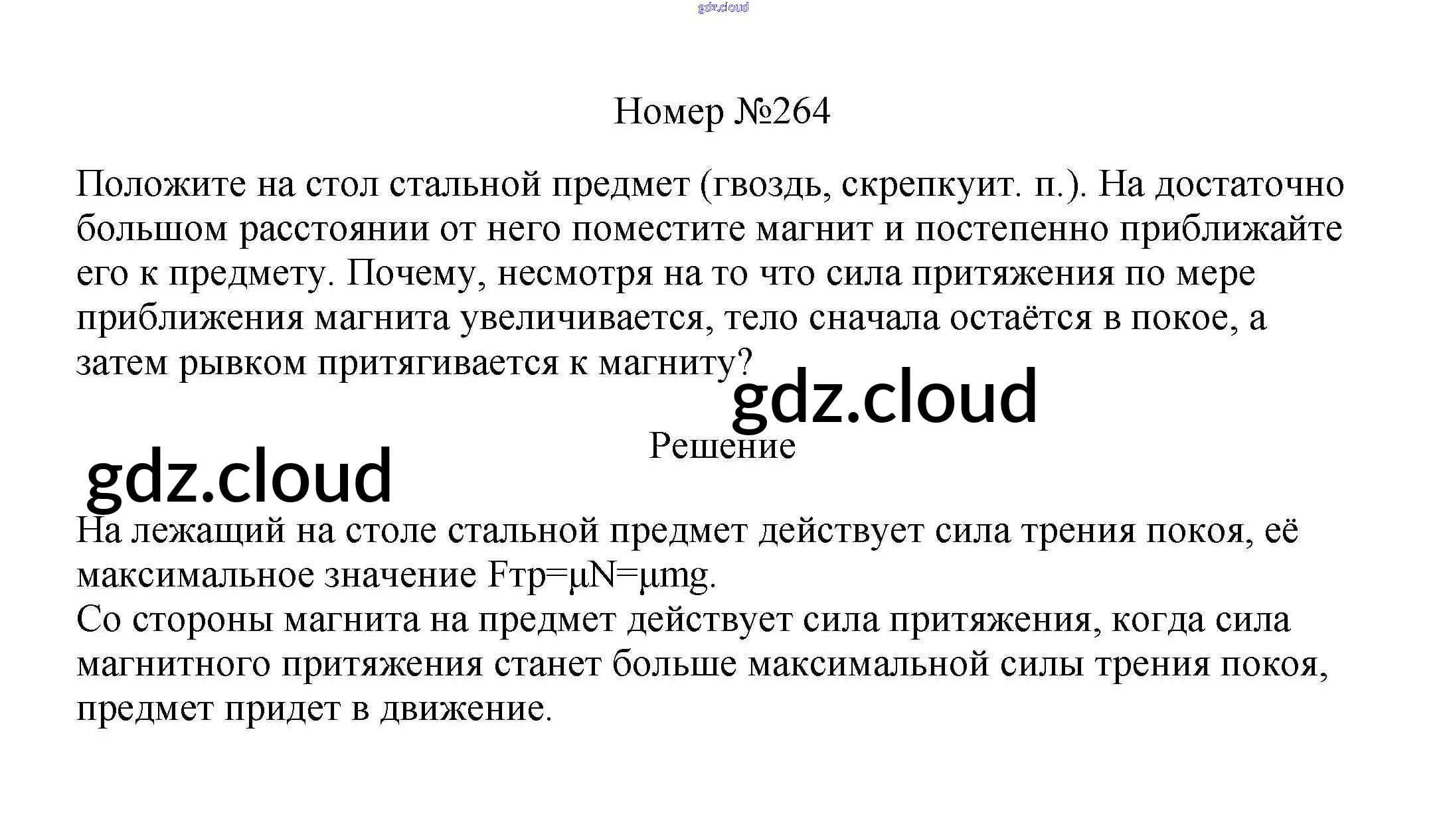 Ответ на задание 264 Сборник вопросов и задач Физика за 7, 8, 9 (седьмой, восьмой, девятый) класс Марон, Позойский Вертикаль 2013