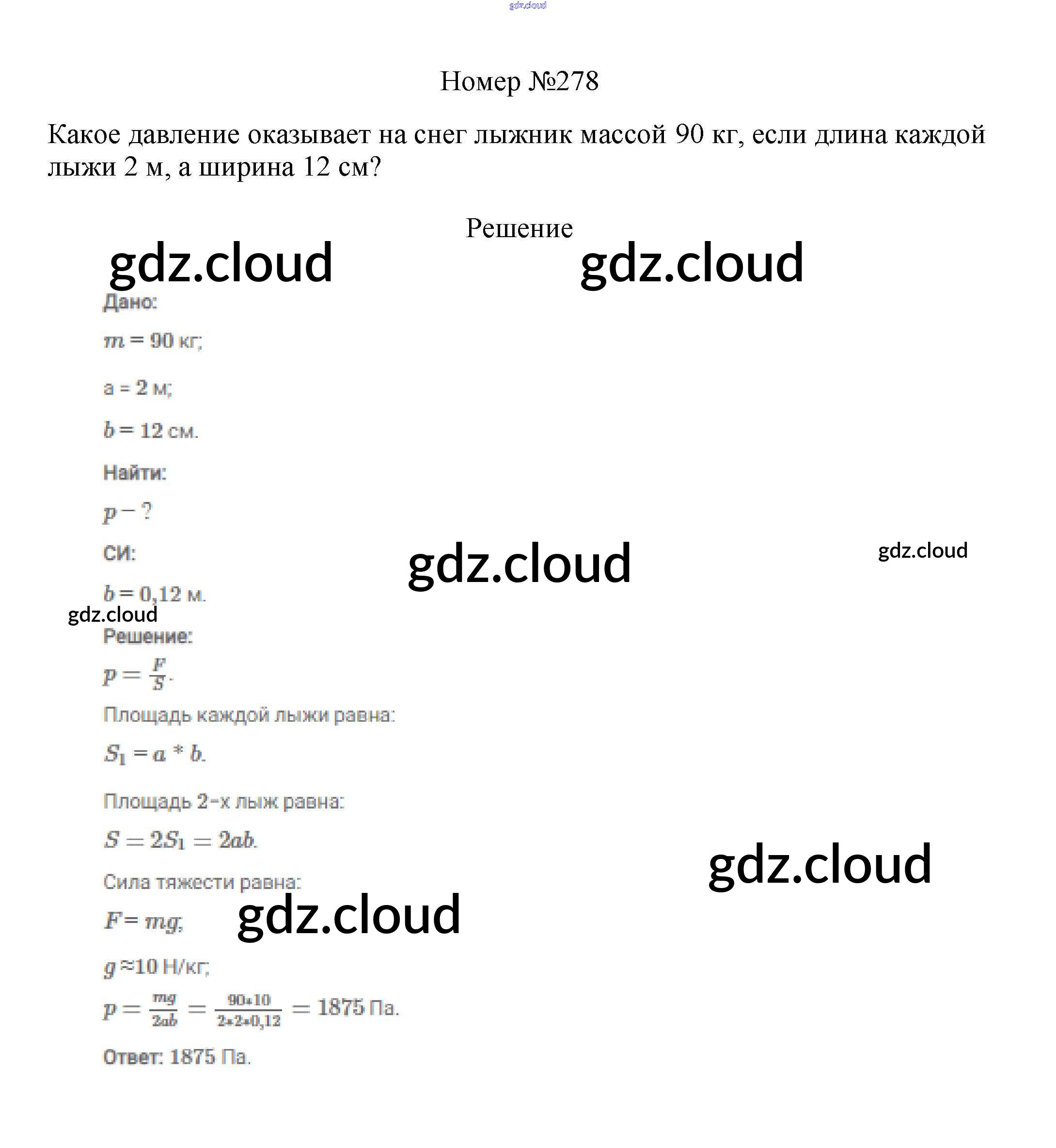 Ответ на задание 278 Сборник вопросов и задач Физика за 7, 8, 9 (седьмой, восьмой, девятый) класс Марон, Позойский Вертикаль 2013