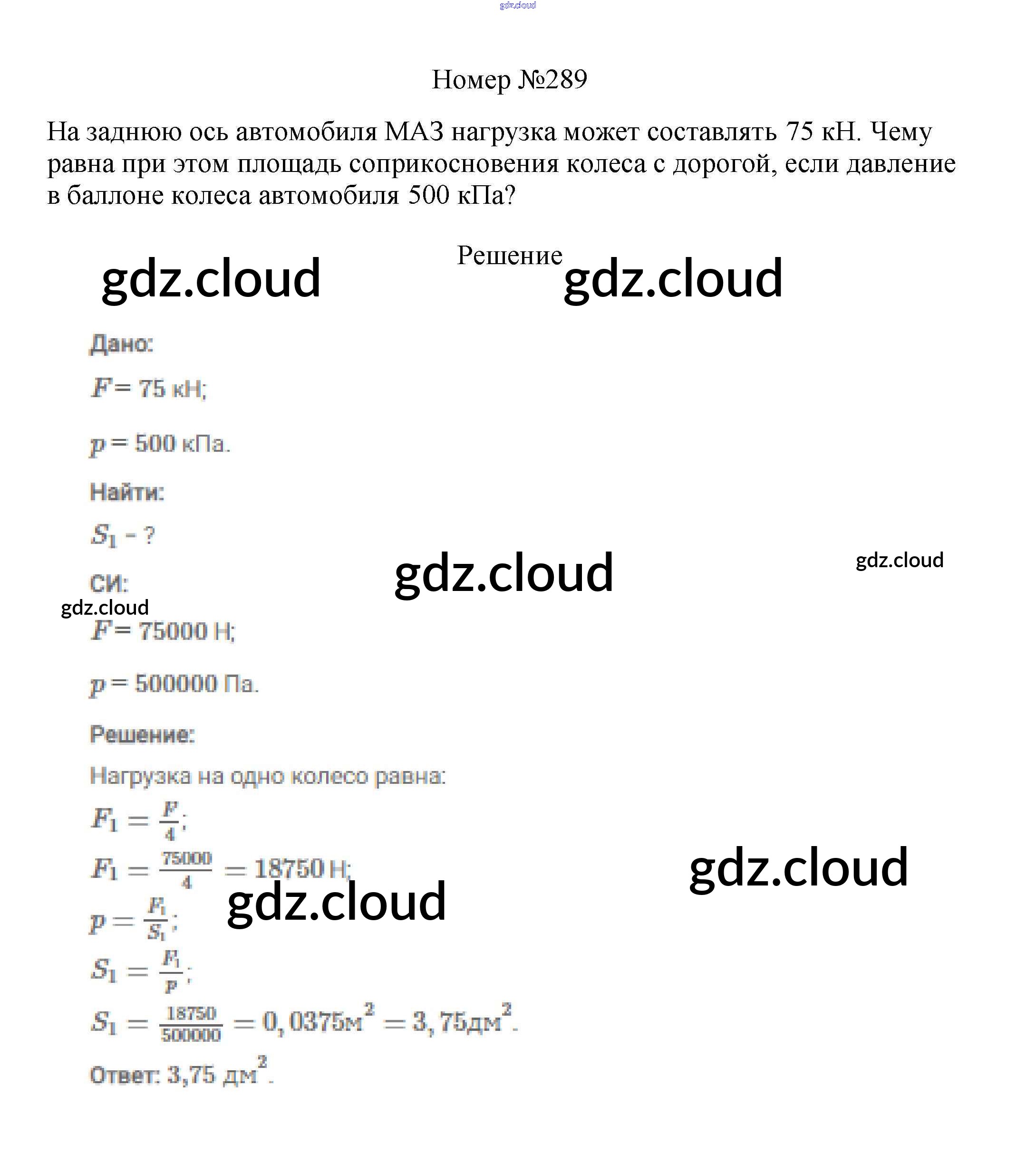 Ответ на задание 289 Сборник вопросов и задач Физика за 7, 8, 9 (седьмой, восьмой, девятый) класс Марон, Позойский Вертикаль 2013