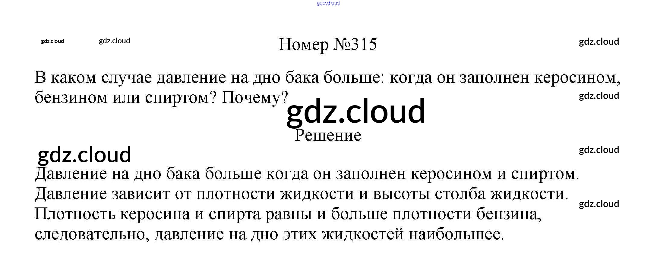 Ответ на задание 315 Сборник вопросов и задач Физика за 7, 8, 9 (седьмой, восьмой, девятый) класс Марон, Позойский Вертикаль 2013