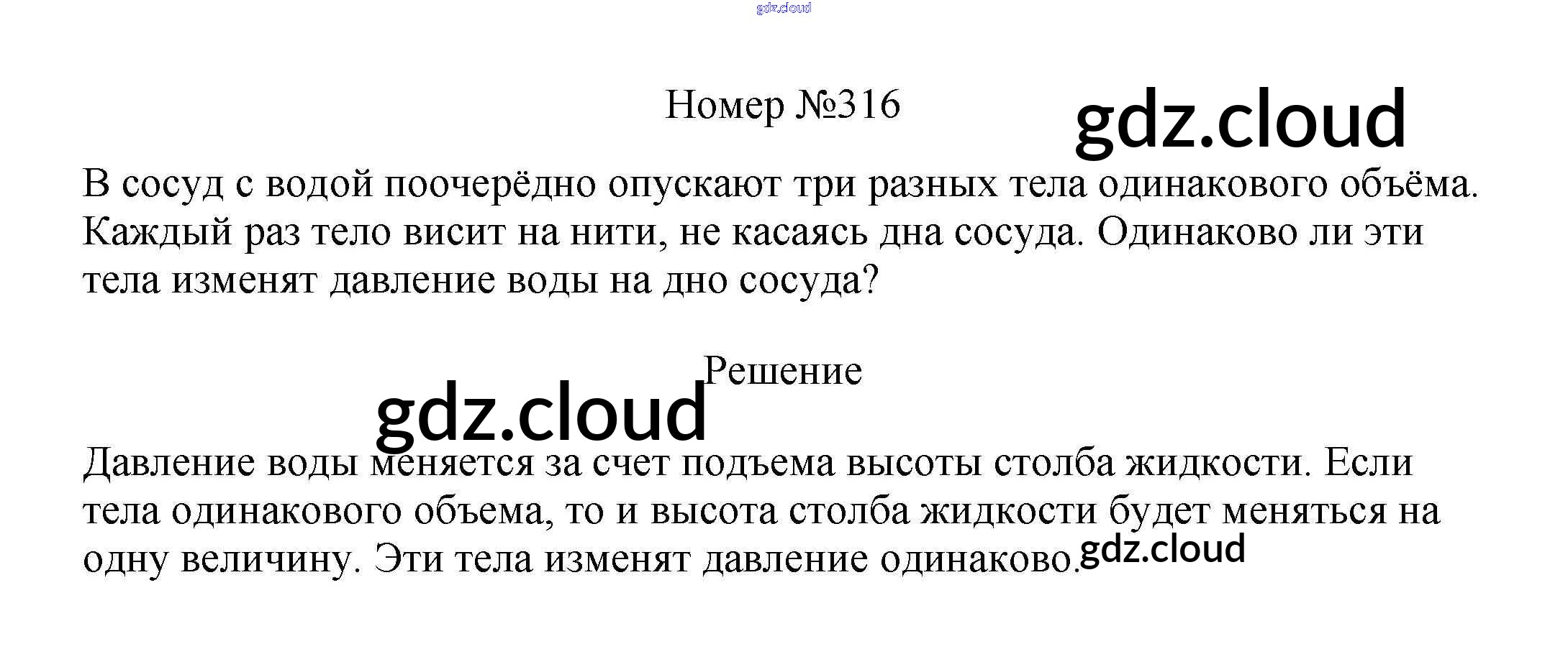 Ответ на задание 316 Сборник вопросов и задач Физика за 7, 8, 9 (седьмой, восьмой, девятый) класс Марон, Позойский Вертикаль 2013