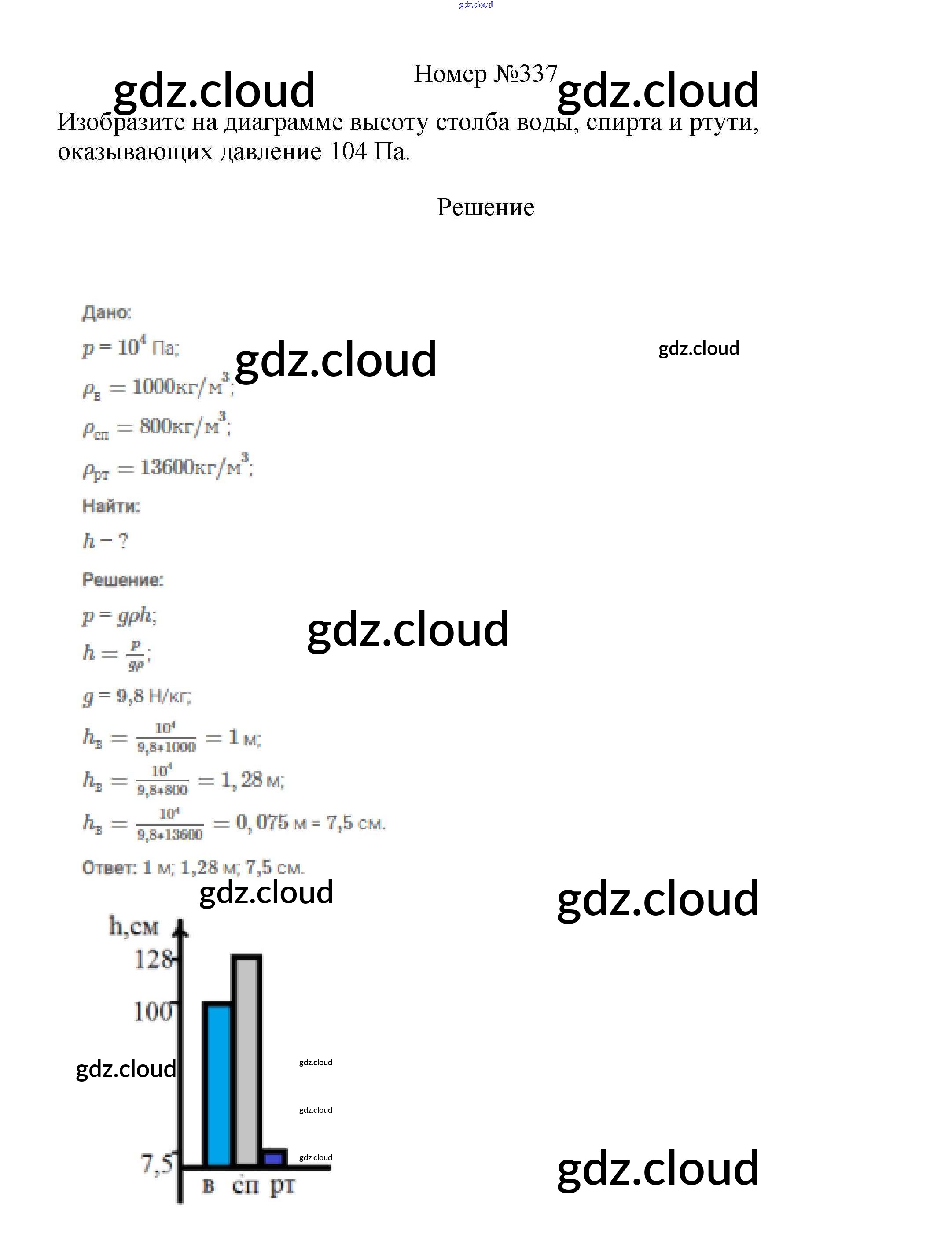 Ответ на задание 337 Сборник вопросов и задач Физика за 7, 8, 9 (седьмой, восьмой, девятый) класс Марон, Позойский Вертикаль 2013
