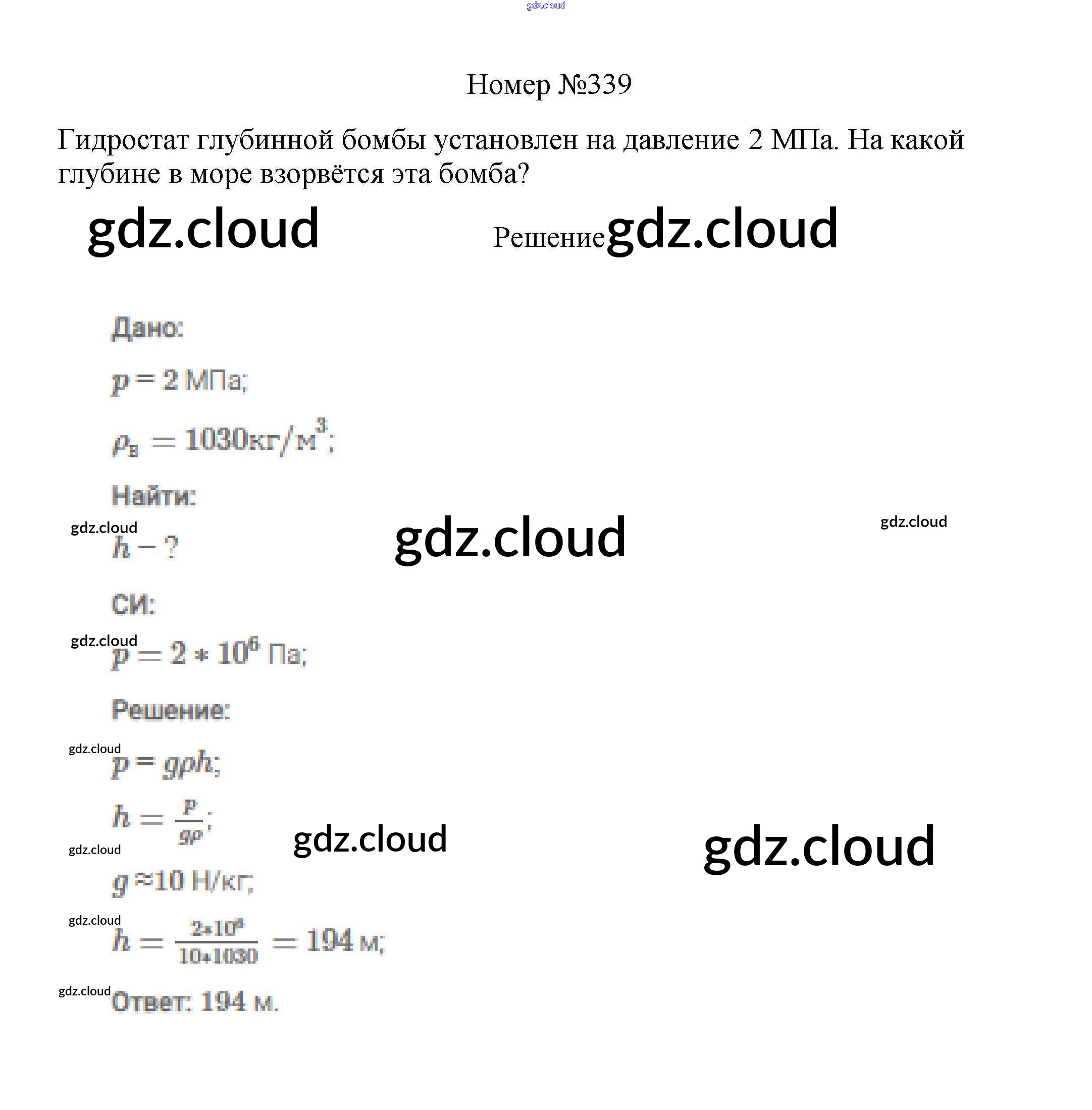 Ответ на задание 339 Сборник вопросов и задач Физика за 7, 8, 9 (седьмой, восьмой, девятый) класс Марон, Позойский Вертикаль 2013
