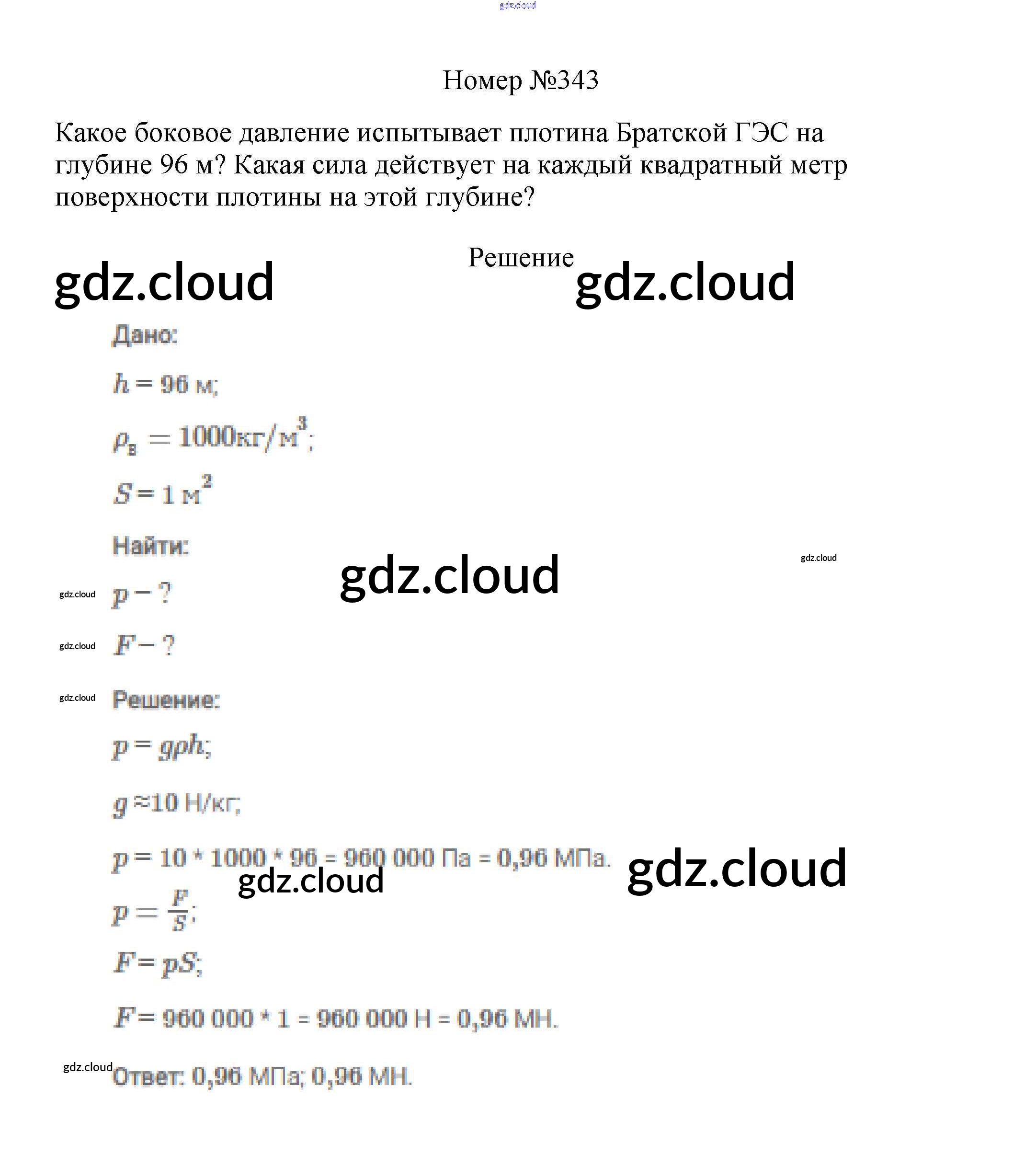 Ответ на задание 343 Сборник вопросов и задач Физика за 7, 8, 9 (седьмой, восьмой, девятый) класс Марон, Позойский Вертикаль 2013