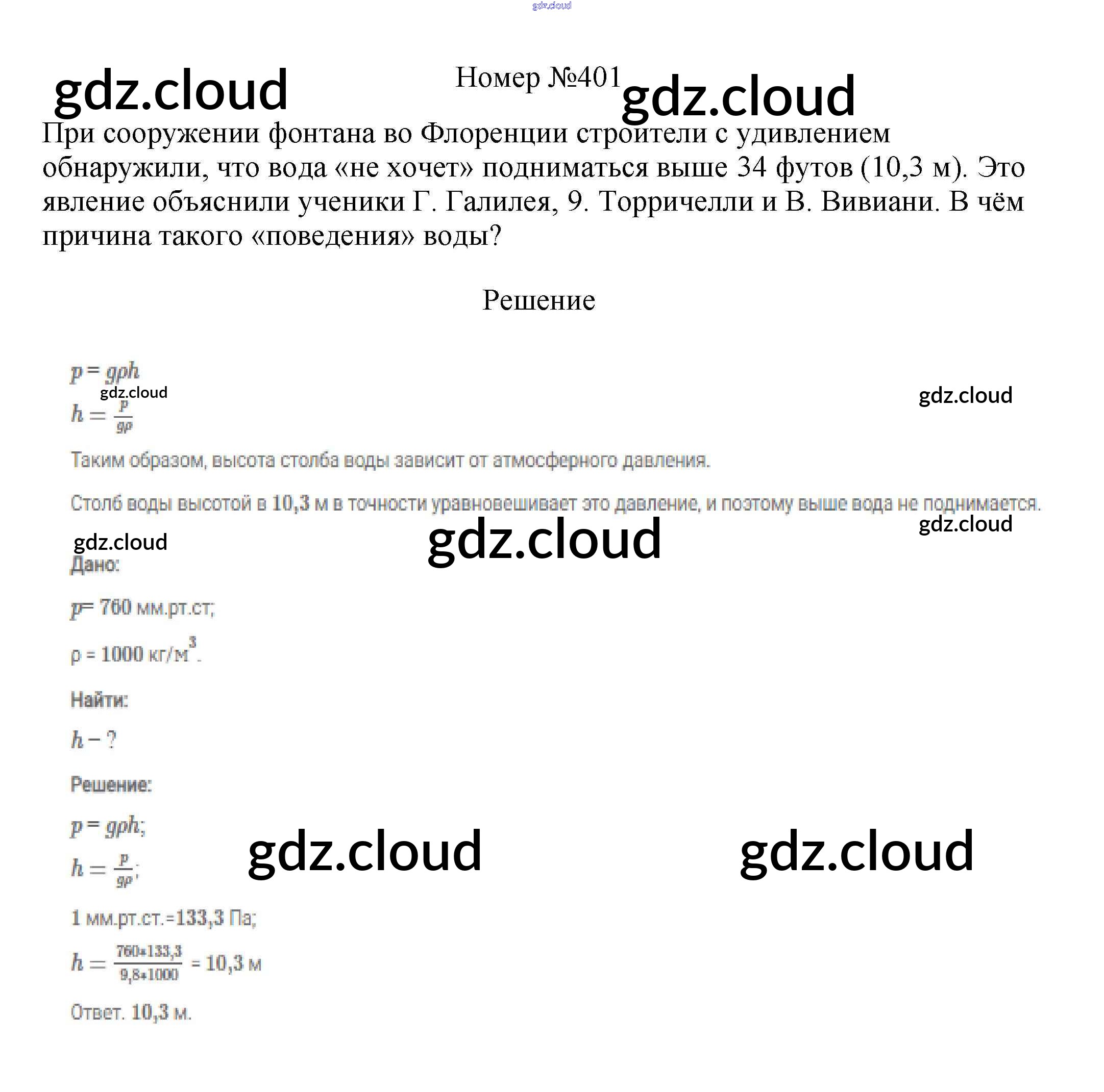 Ответ на задание 401 Сборник вопросов и задач Физика за 7, 8, 9 (седьмой, восьмой, девятый) класс Марон, Позойский Вертикаль 2013