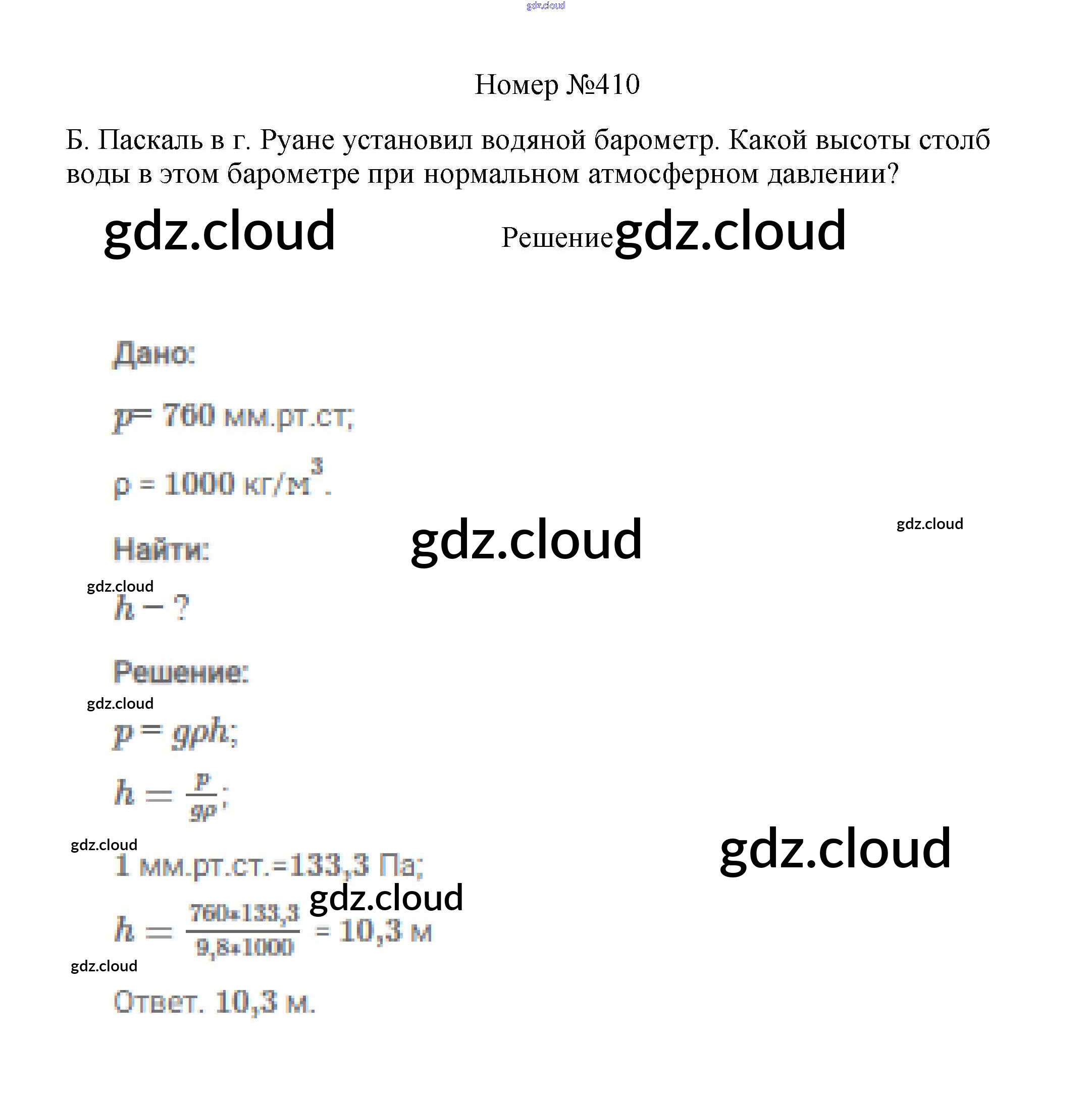 Ответ на задание 410 Сборник вопросов и задач Физика за 7, 8, 9 (седьмой, восьмой, девятый) класс Марон, Позойский Вертикаль 2013