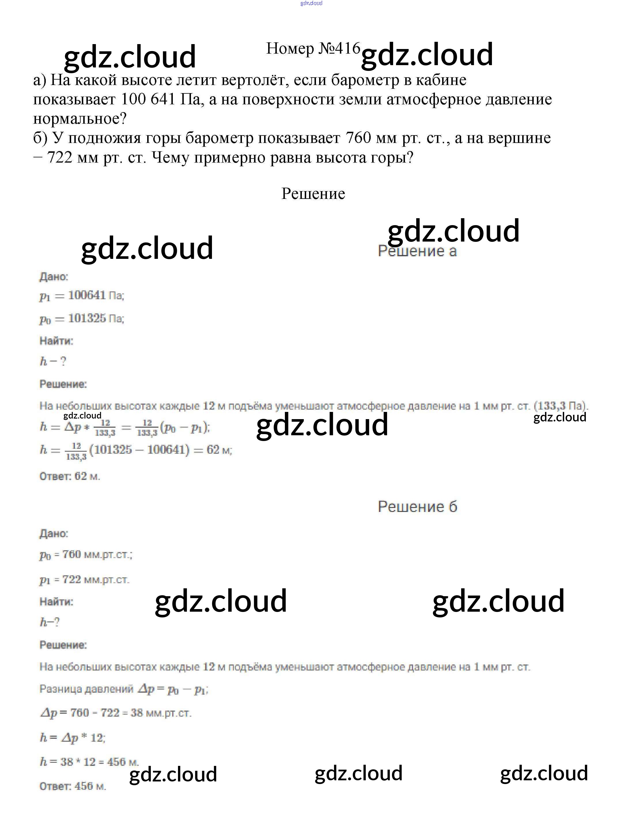 Ответ на задание 416 Сборник вопросов и задач Физика за 7, 8, 9 (седьмой, восьмой, девятый) класс Марон, Позойский Вертикаль 2013