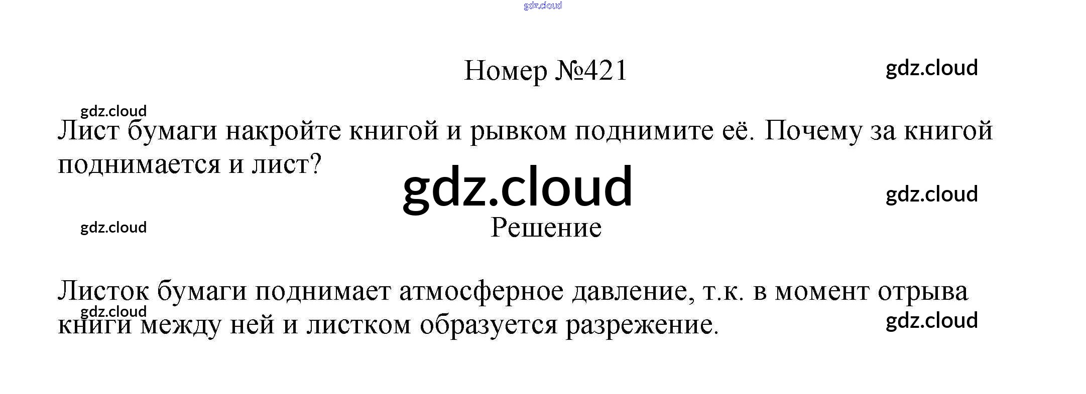 Ответ на задание 421 Сборник вопросов и задач Физика за 7, 8, 9 (седьмой, восьмой, девятый) класс Марон, Позойский Вертикаль 2013