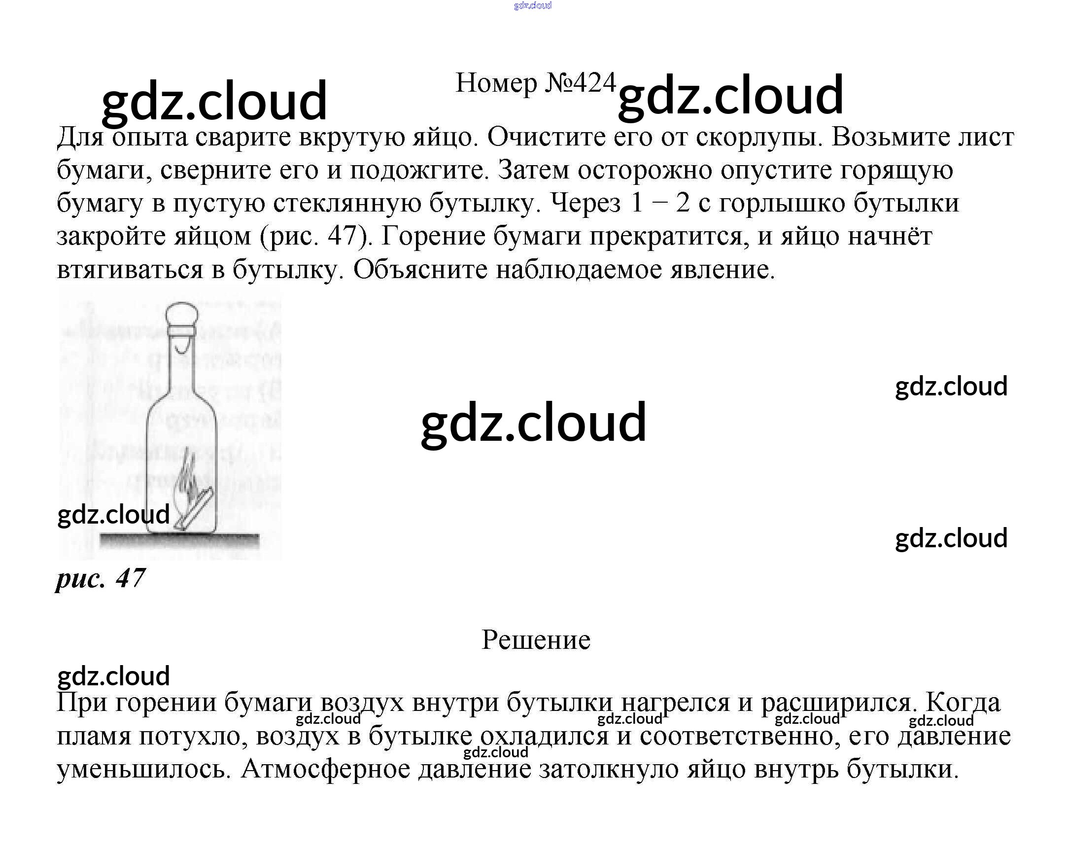 Ответ на задание 424 Сборник вопросов и задач Физика за 7, 8, 9 (седьмой, восьмой, девятый) класс Марон, Позойский Вертикаль 2013