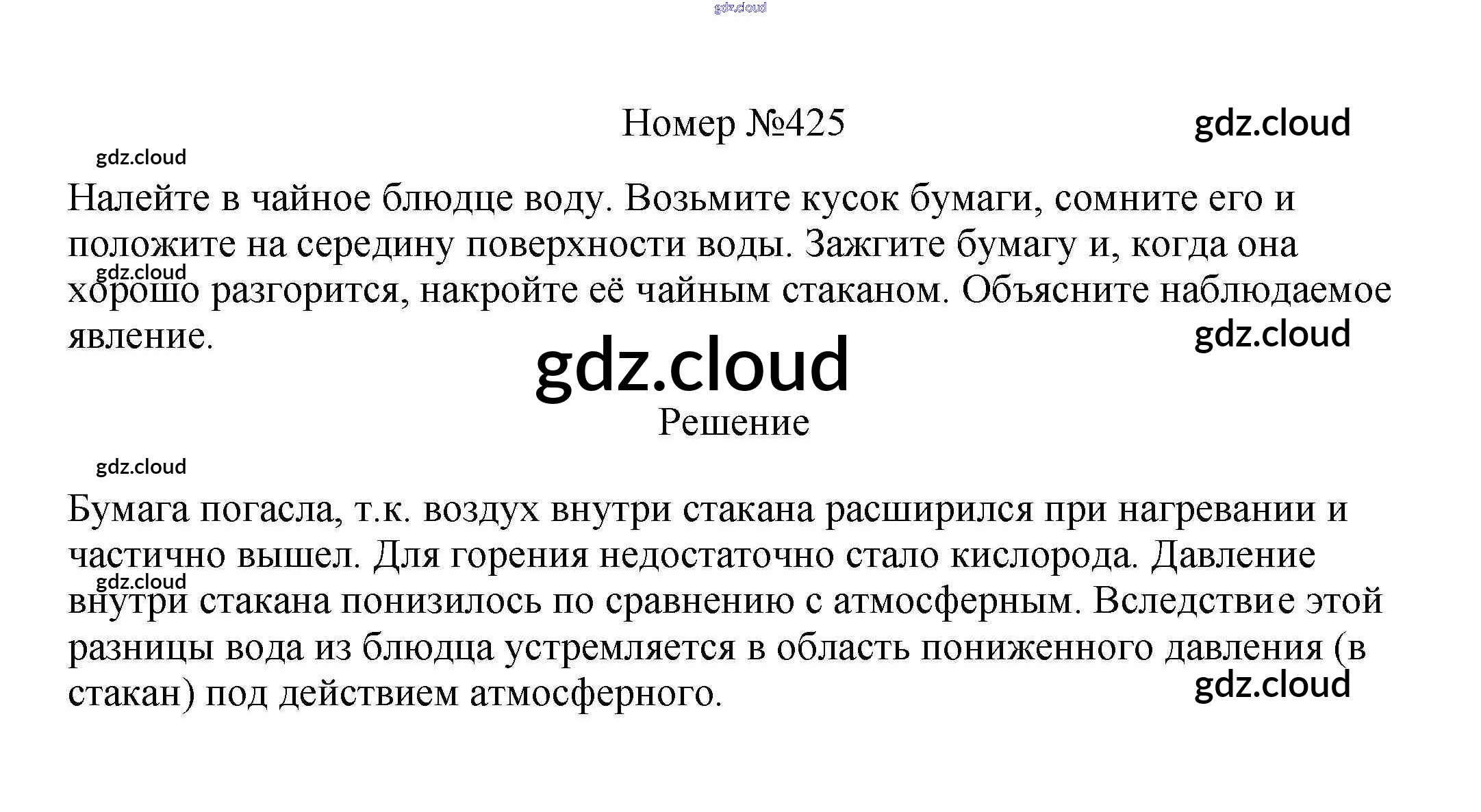 Ответ на задание 425 Сборник вопросов и задач Физика за 7, 8, 9 (седьмой, восьмой, девятый) класс Марон, Позойский Вертикаль 2013