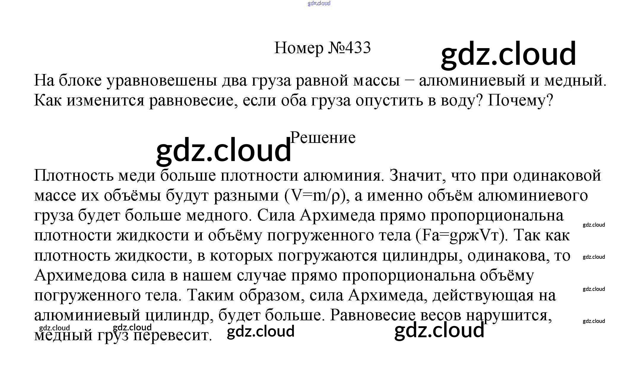 Ответ на задание 433 Сборник вопросов и задач Физика за 7, 8, 9 (седьмой, восьмой, девятый) класс Марон, Позойский Вертикаль 2013