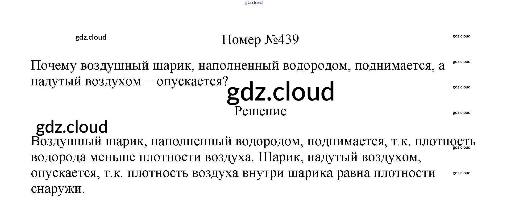 Ответ на задание 439 Сборник вопросов и задач Физика за 7, 8, 9 (седьмой, восьмой, девятый) класс Марон, Позойский Вертикаль 2013