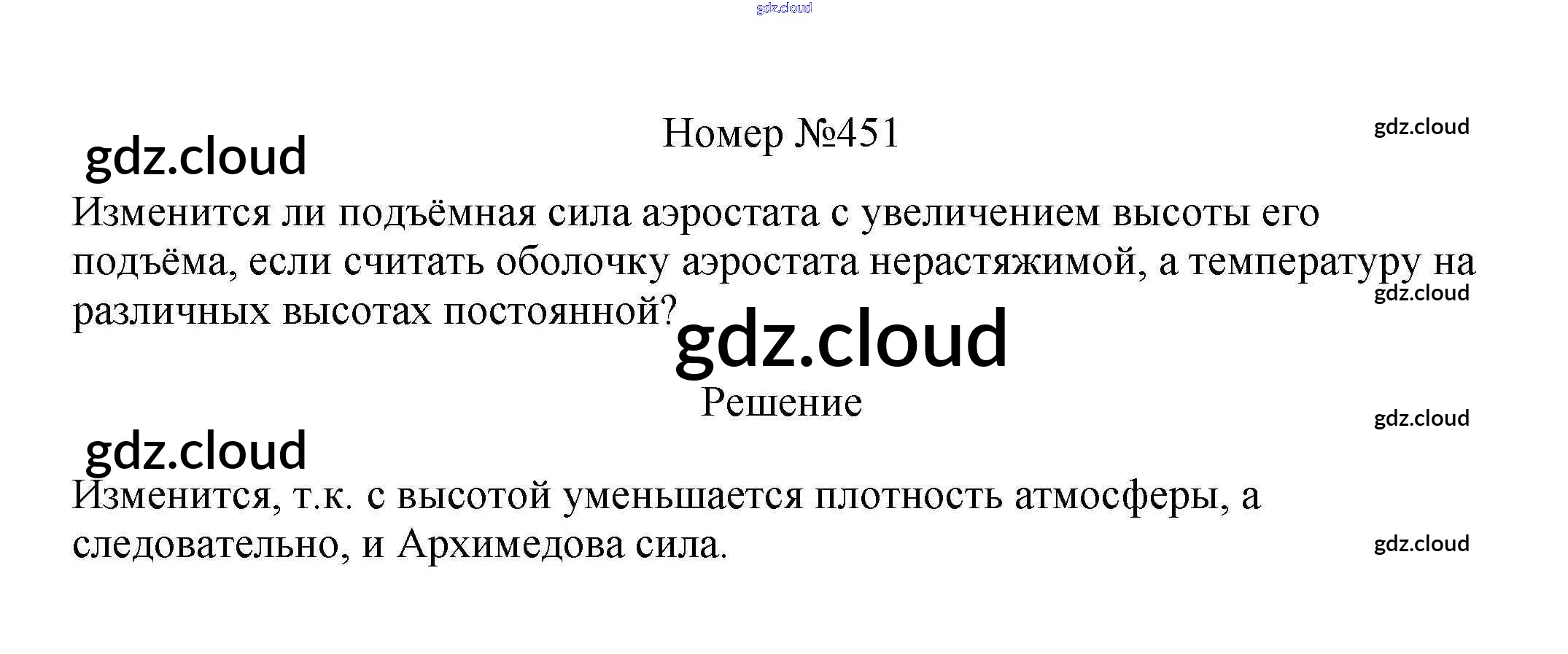 Ответ на задание 451 Сборник вопросов и задач Физика за 7, 8, 9 (седьмой, восьмой, девятый) класс Марон, Позойский Вертикаль 2013