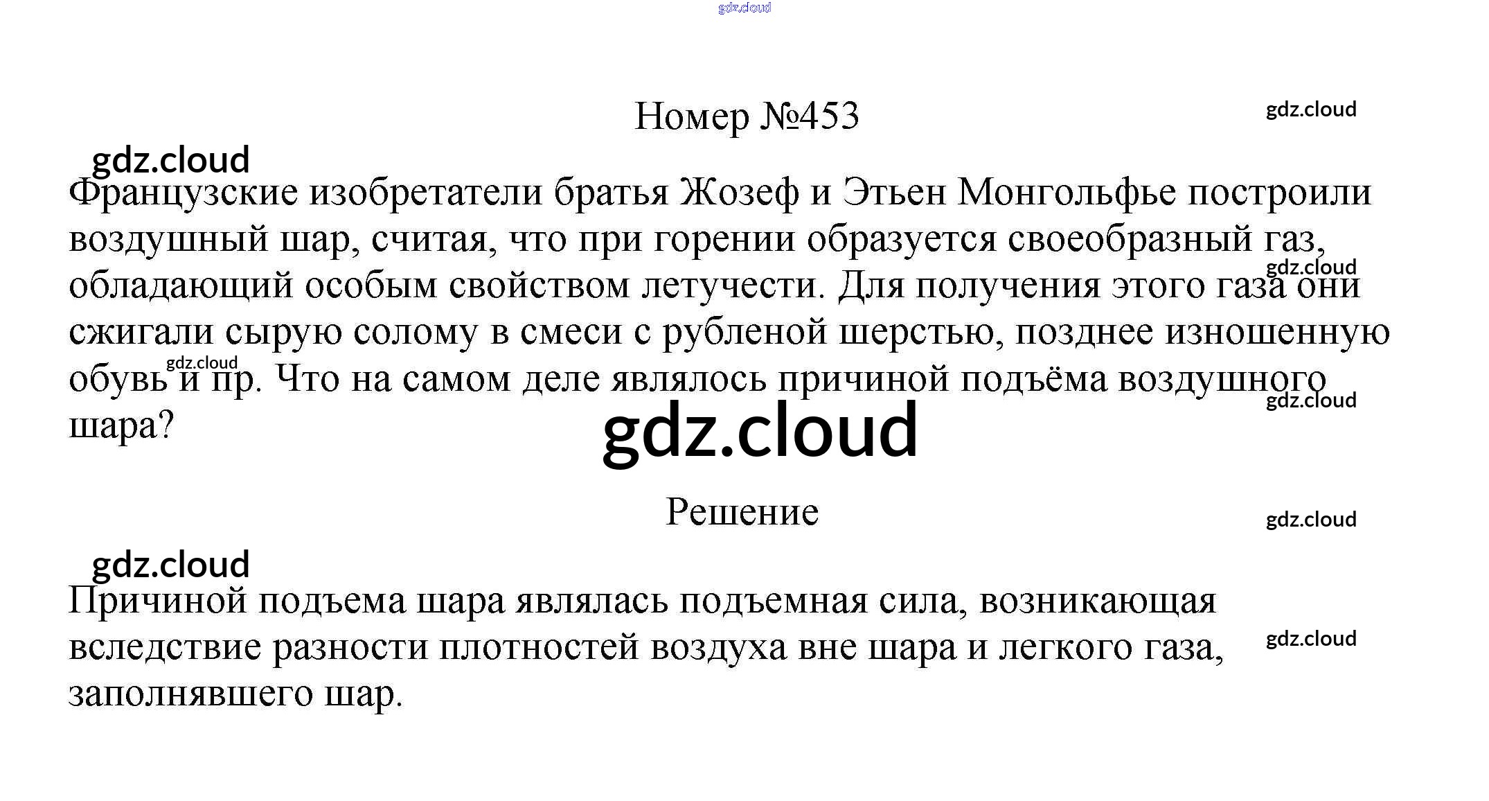 Ответ на задание 453 Сборник вопросов и задач Физика за 7, 8, 9 (седьмой, восьмой, девятый) класс Марон, Позойский Вертикаль 2013