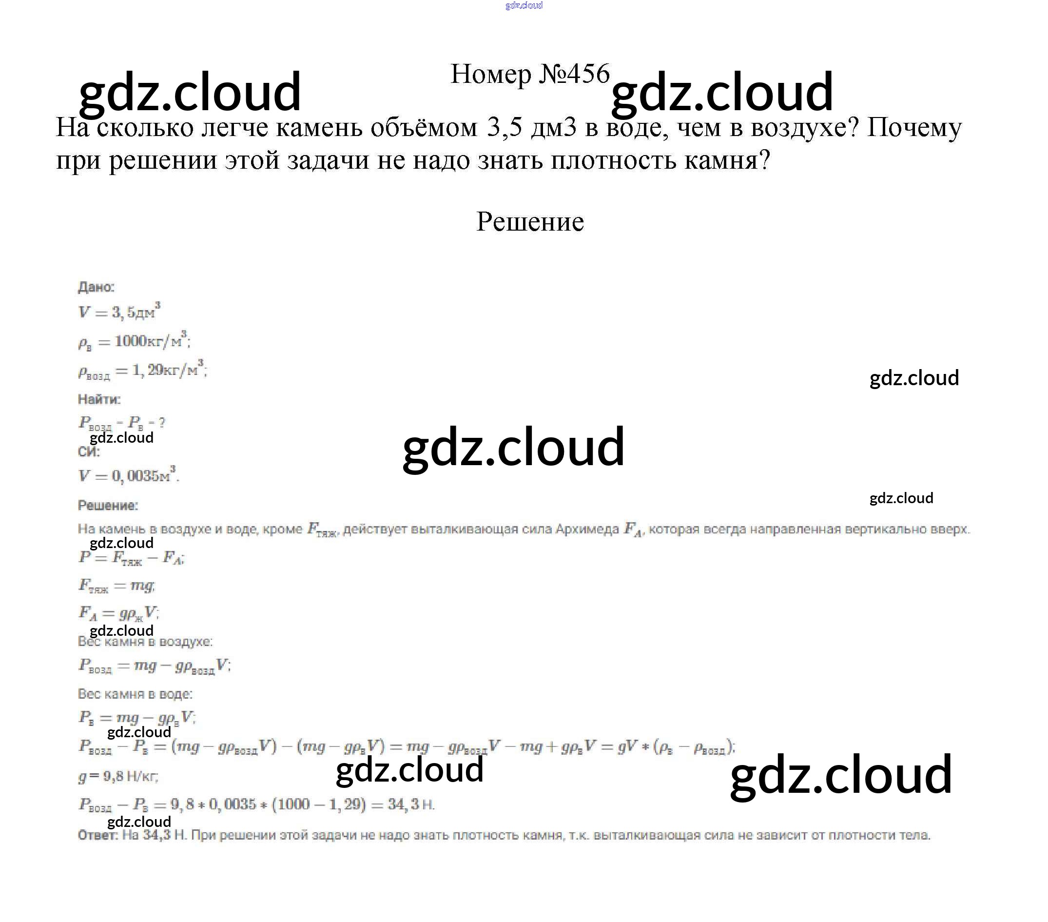 Ответ на задание 456 Сборник вопросов и задач Физика за 7, 8, 9 (седьмой, восьмой, девятый) класс Марон, Позойский Вертикаль 2013