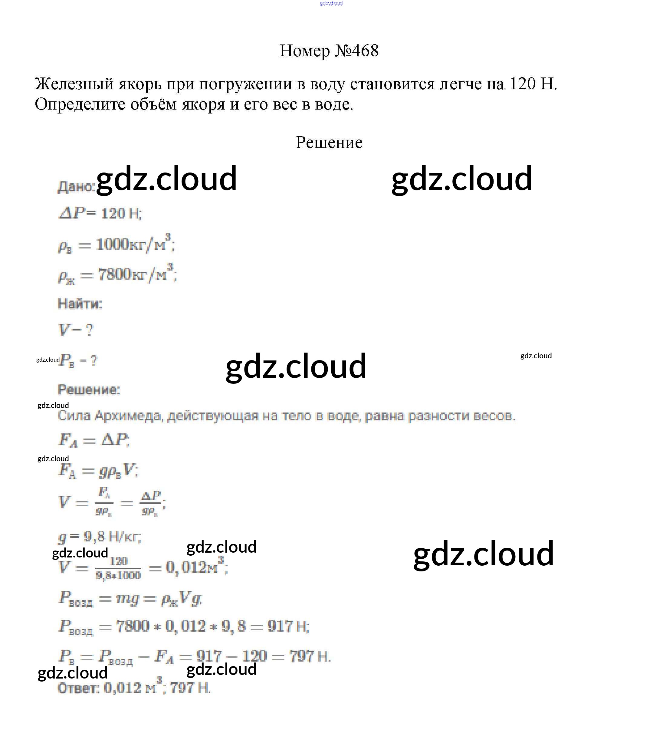 Ответ на задание 468 Сборник вопросов и задач Физика за 7, 8, 9 (седьмой, восьмой, девятый) класс Марон, Позойский Вертикаль 2013