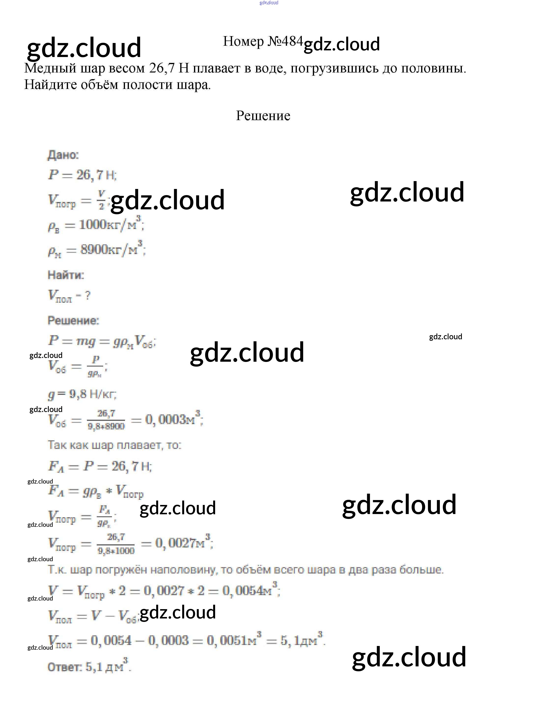 Ответ на задание 484 Сборник вопросов и задач Физика за 7, 8, 9 (седьмой, восьмой, девятый) класс Марон, Позойский Вертикаль 2013