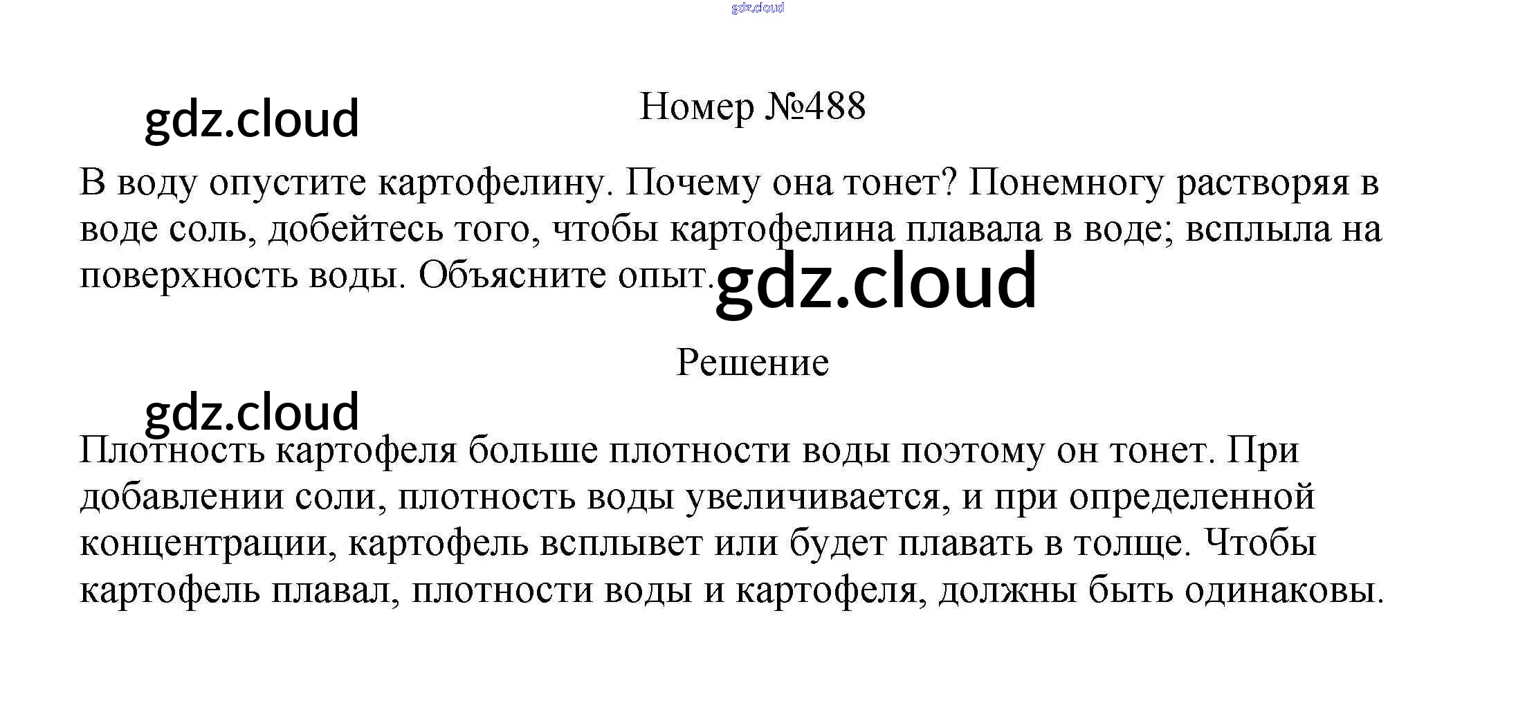 Ответ на задание 488 Сборник вопросов и задач Физика за 7, 8, 9 (седьмой, восьмой, девятый) класс Марон, Позойский Вертикаль 2013