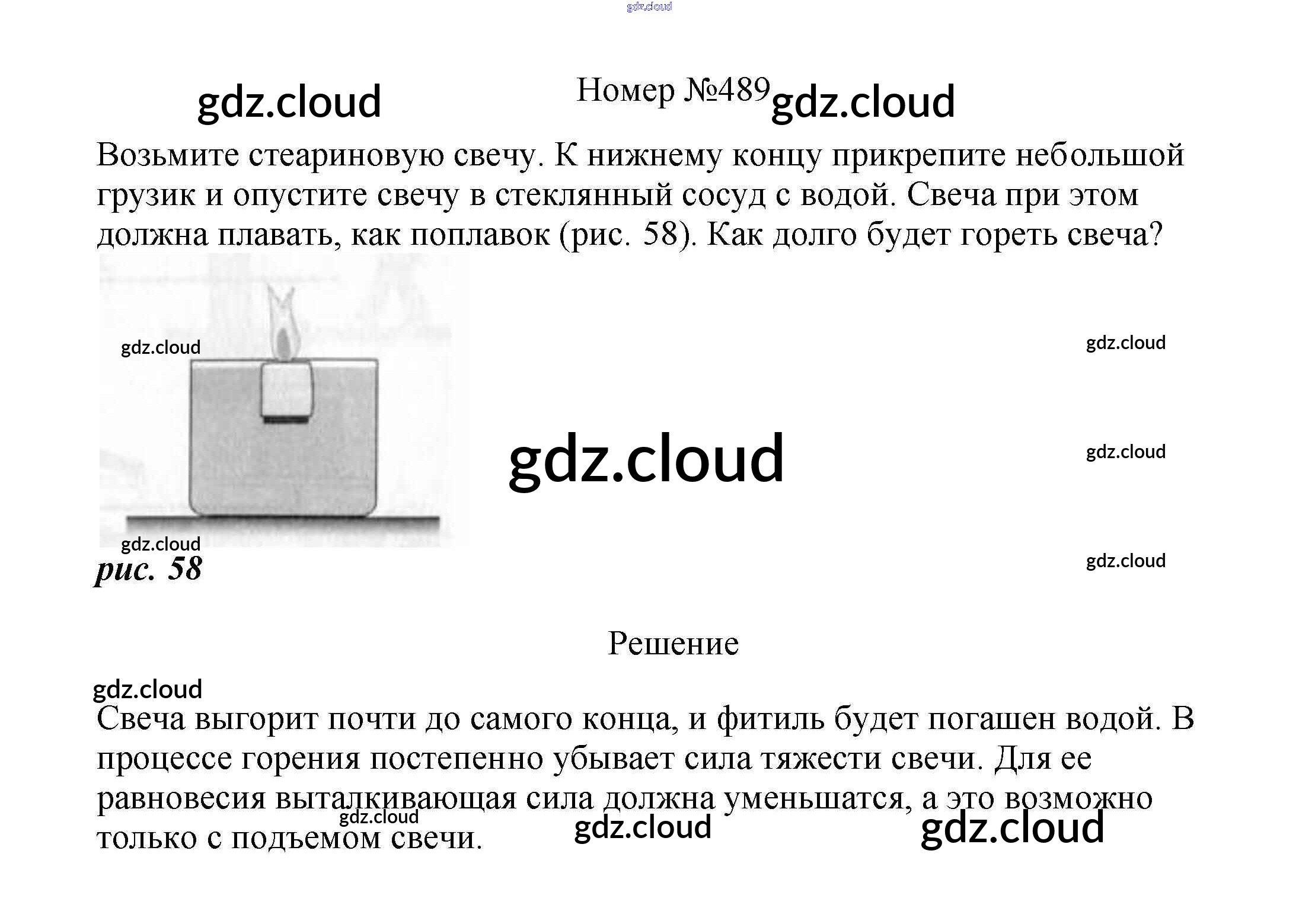 Ответ на задание 489 Сборник вопросов и задач Физика за 7, 8, 9 (седьмой, восьмой, девятый) класс Марон, Позойский Вертикаль 2013