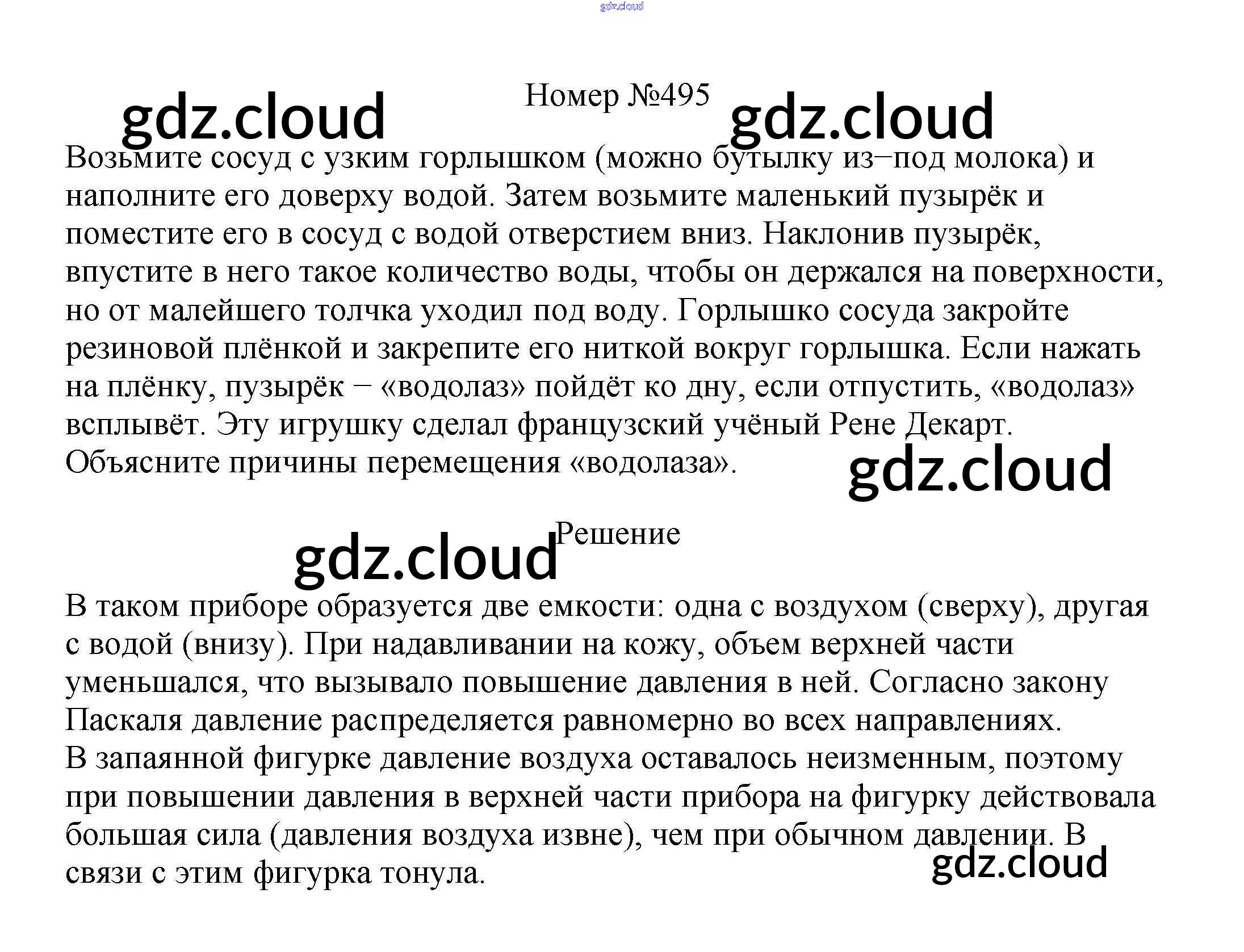 Ответ на задание 495 Сборник вопросов и задач Физика за 7, 8, 9 (седьмой, восьмой, девятый) класс Марон, Позойский Вертикаль 2013