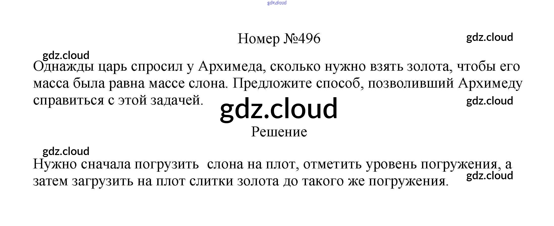 Ответ на задание 496 Сборник вопросов и задач Физика за 7, 8, 9 (седьмой, восьмой, девятый) класс Марон, Позойский Вертикаль 2013
