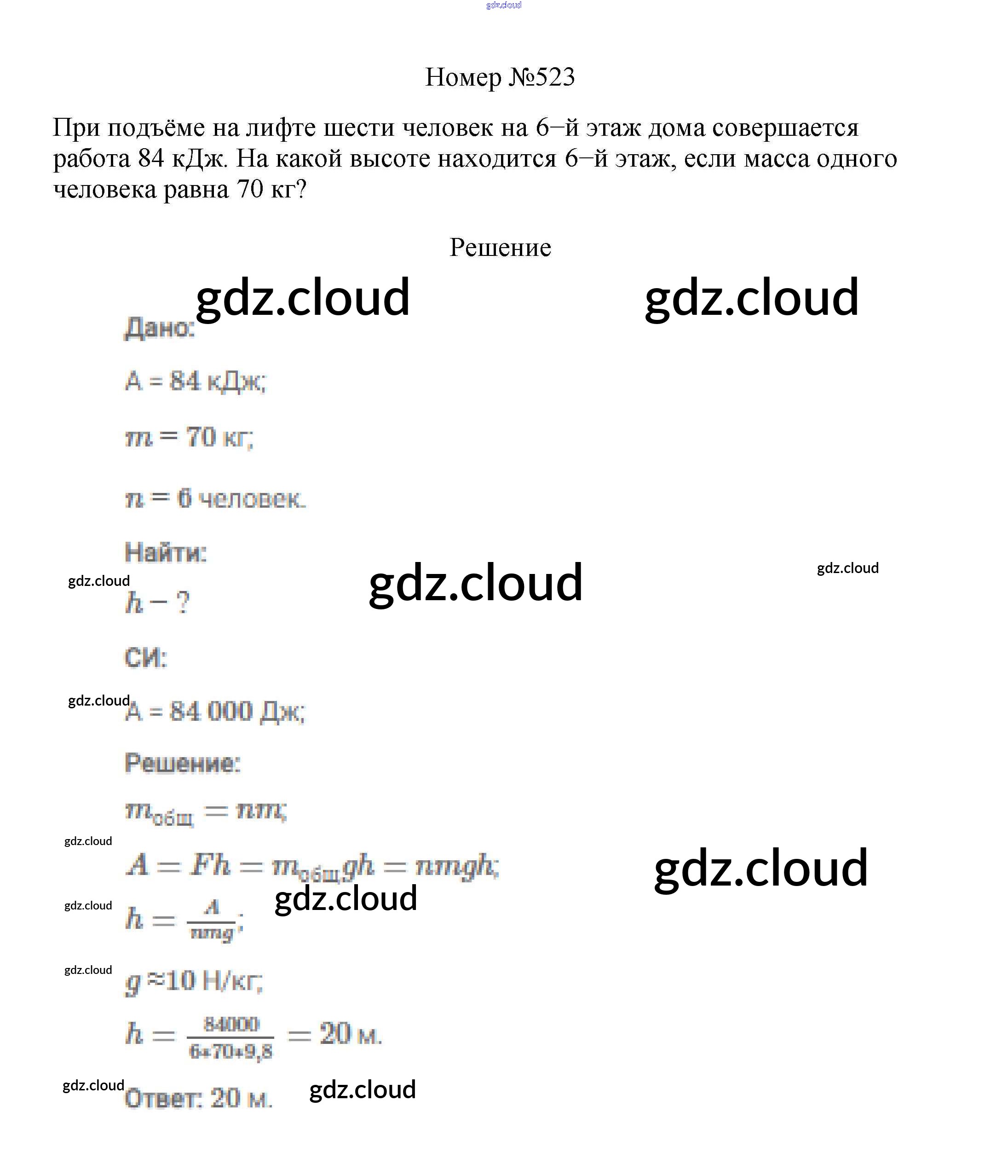 Ответ на задание 523 Сборник вопросов и задач Физика за 7, 8, 9 (седьмой, восьмой, девятый) класс Марон, Позойский Вертикаль 2013