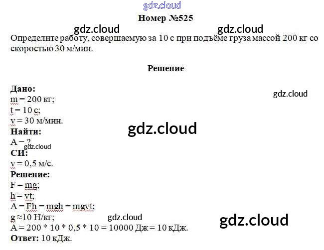 Ответ на задание 525 Сборник вопросов и задач Физика за 7, 8, 9 (седьмой, восьмой, девятый) класс Марон, Позойский Вертикаль 2013