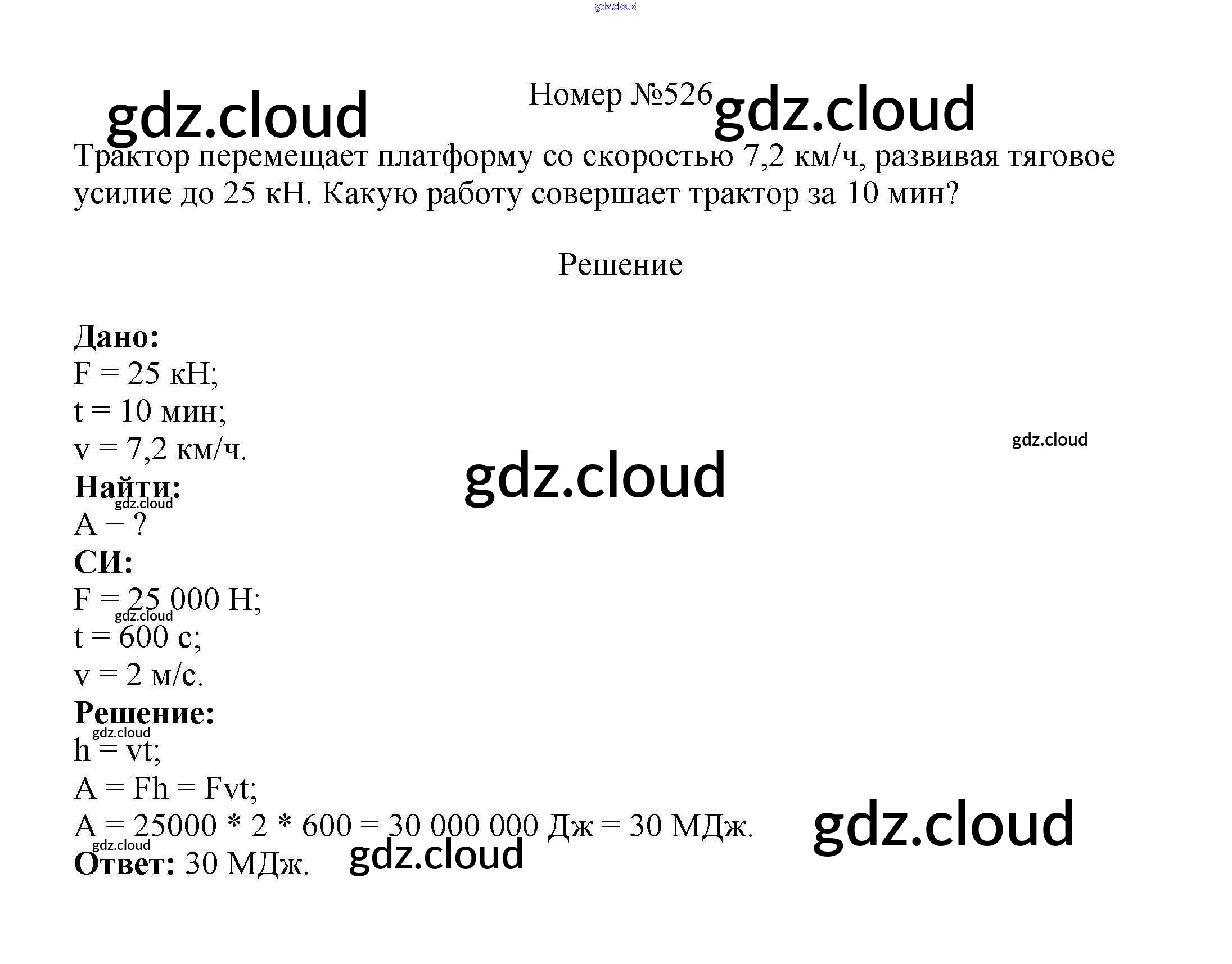 Ответ на задание 526 Сборник вопросов и задач Физика за 7, 8, 9 (седьмой, восьмой, девятый) класс Марон, Позойский Вертикаль 2013