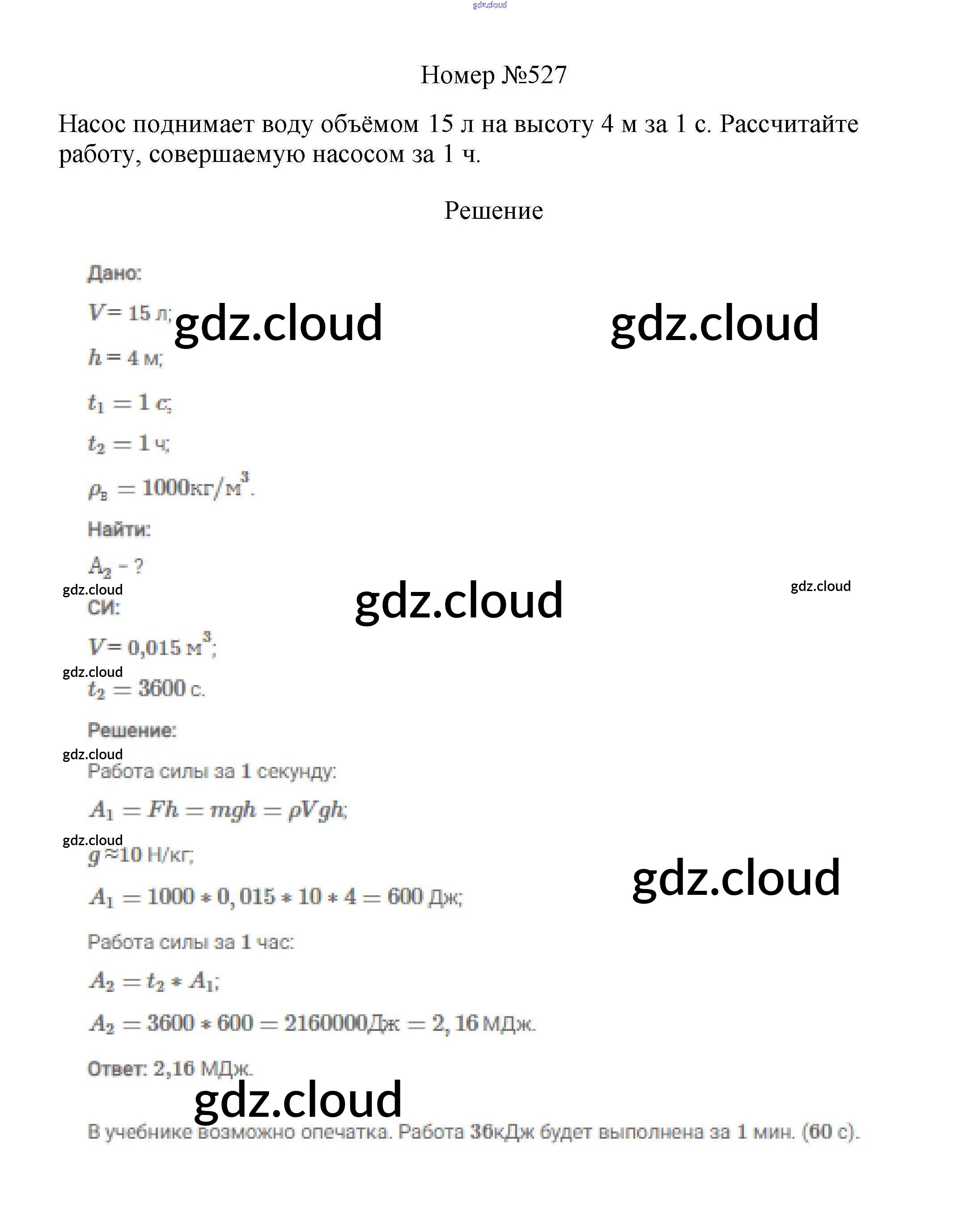 Ответ на задание 527 Сборник вопросов и задач Физика за 7, 8, 9 (седьмой, восьмой, девятый) класс Марон, Позойский Вертикаль 2013