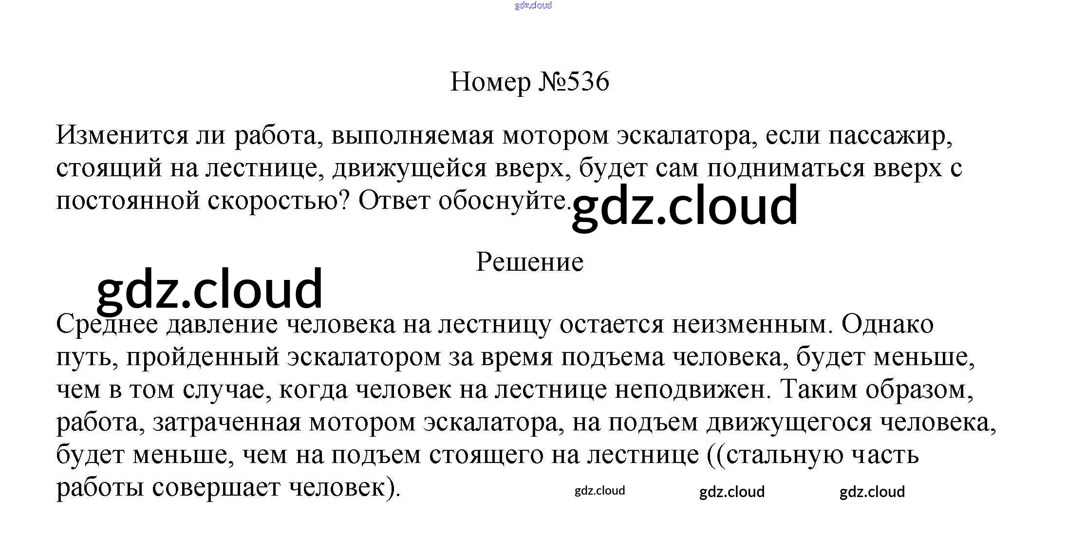 Ответ на задание 536 Сборник вопросов и задач Физика за 7, 8, 9 (седьмой, восьмой, девятый) класс Марон, Позойский Вертикаль 2013