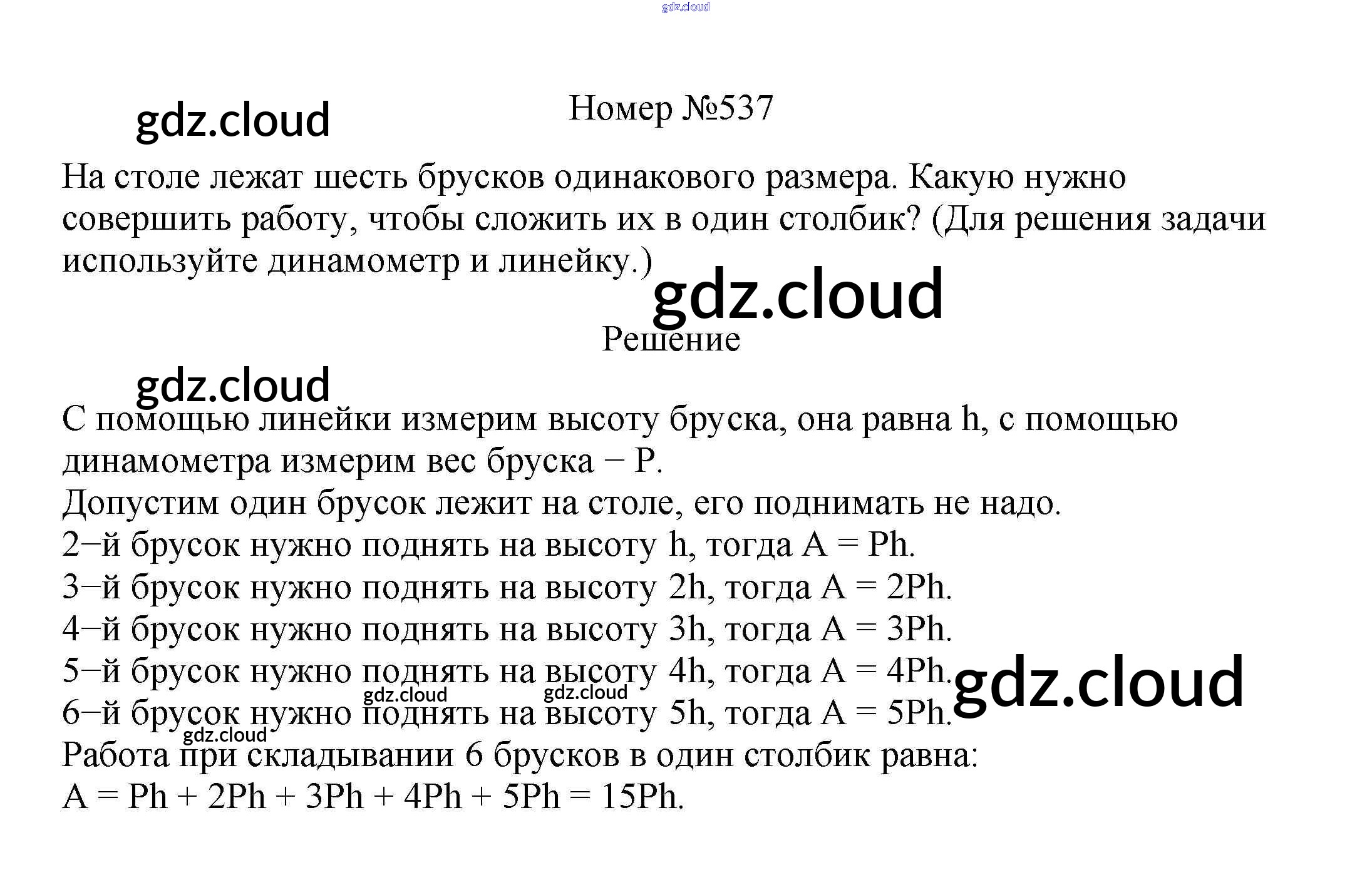 Ответ на задание 537 Сборник вопросов и задач Физика за 7, 8, 9 (седьмой, восьмой, девятый) класс Марон, Позойский Вертикаль 2013