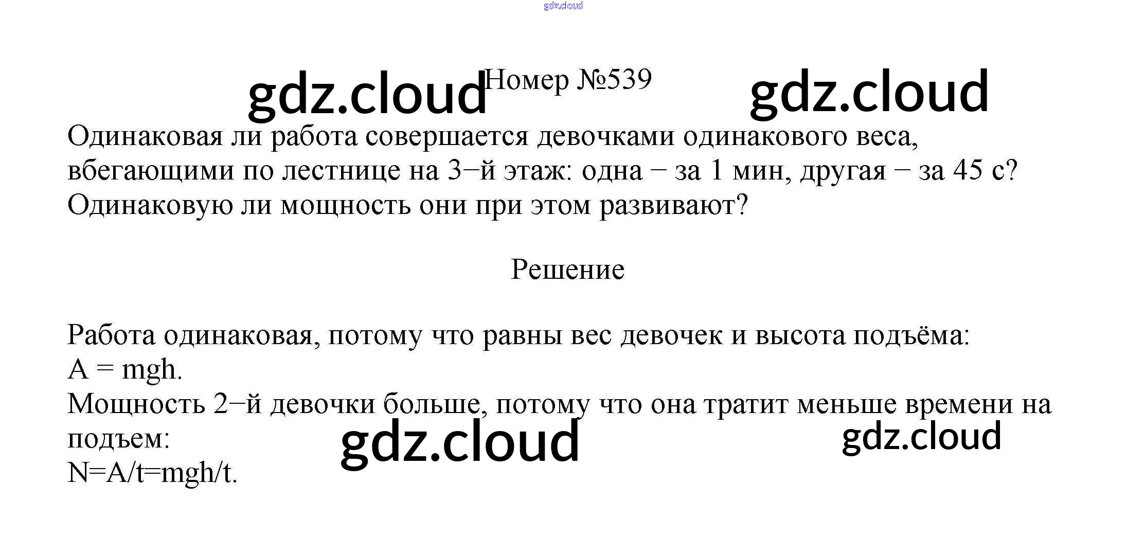 Ответ на задание 539 Сборник вопросов и задач Физика за 7, 8, 9 (седьмой, восьмой, девятый) класс Марон, Позойский Вертикаль 2013