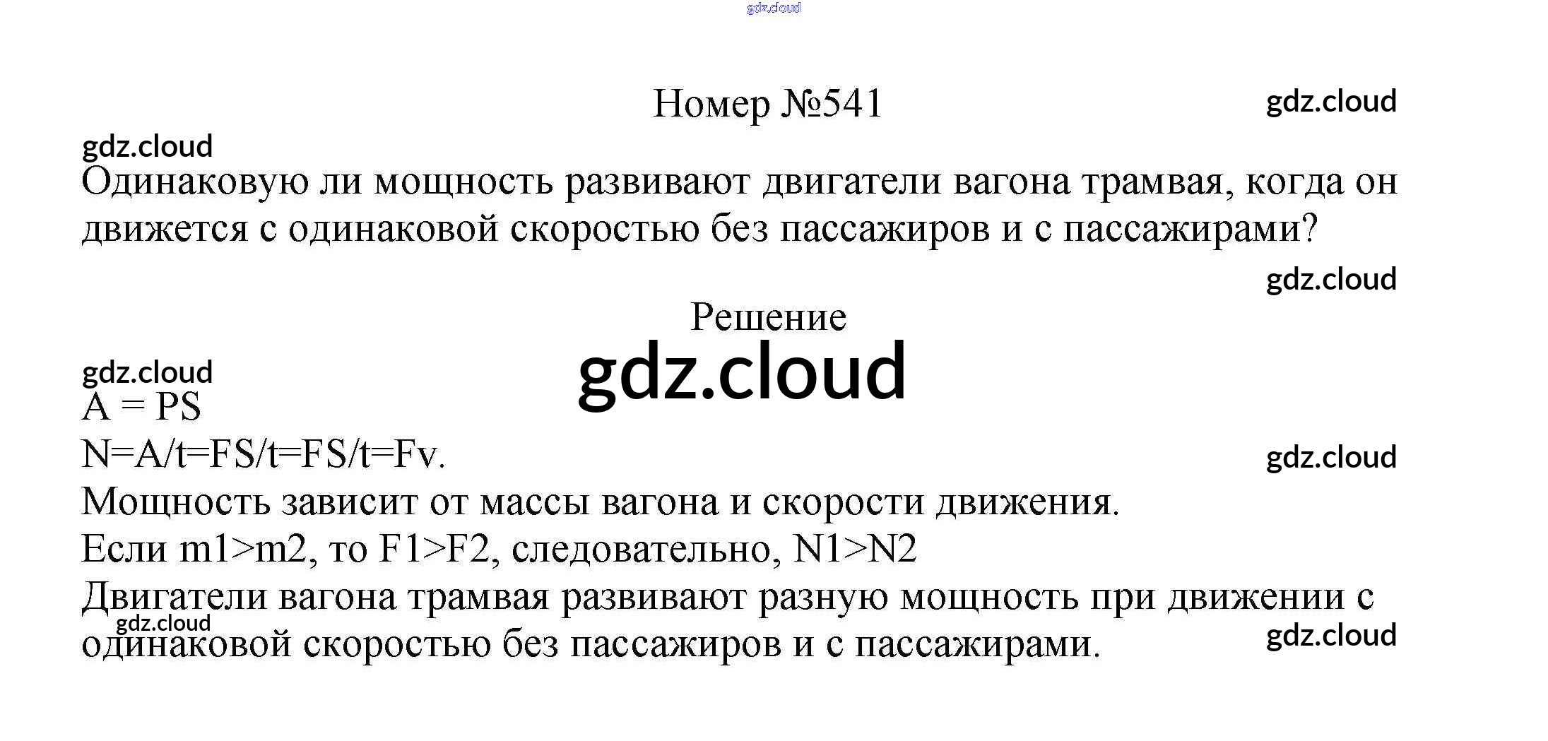 Ответ на задание 541 Сборник вопросов и задач Физика за 7, 8, 9 (седьмой, восьмой, девятый) класс Марон, Позойский Вертикаль 2013