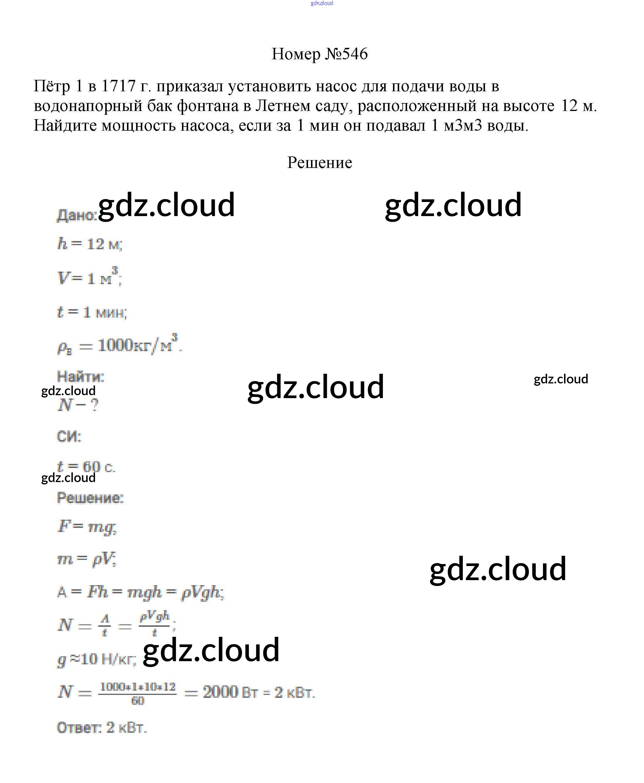 Ответ на задание 546 Сборник вопросов и задач Физика за 7, 8, 9 (седьмой, восьмой, девятый) класс Марон, Позойский Вертикаль 2013