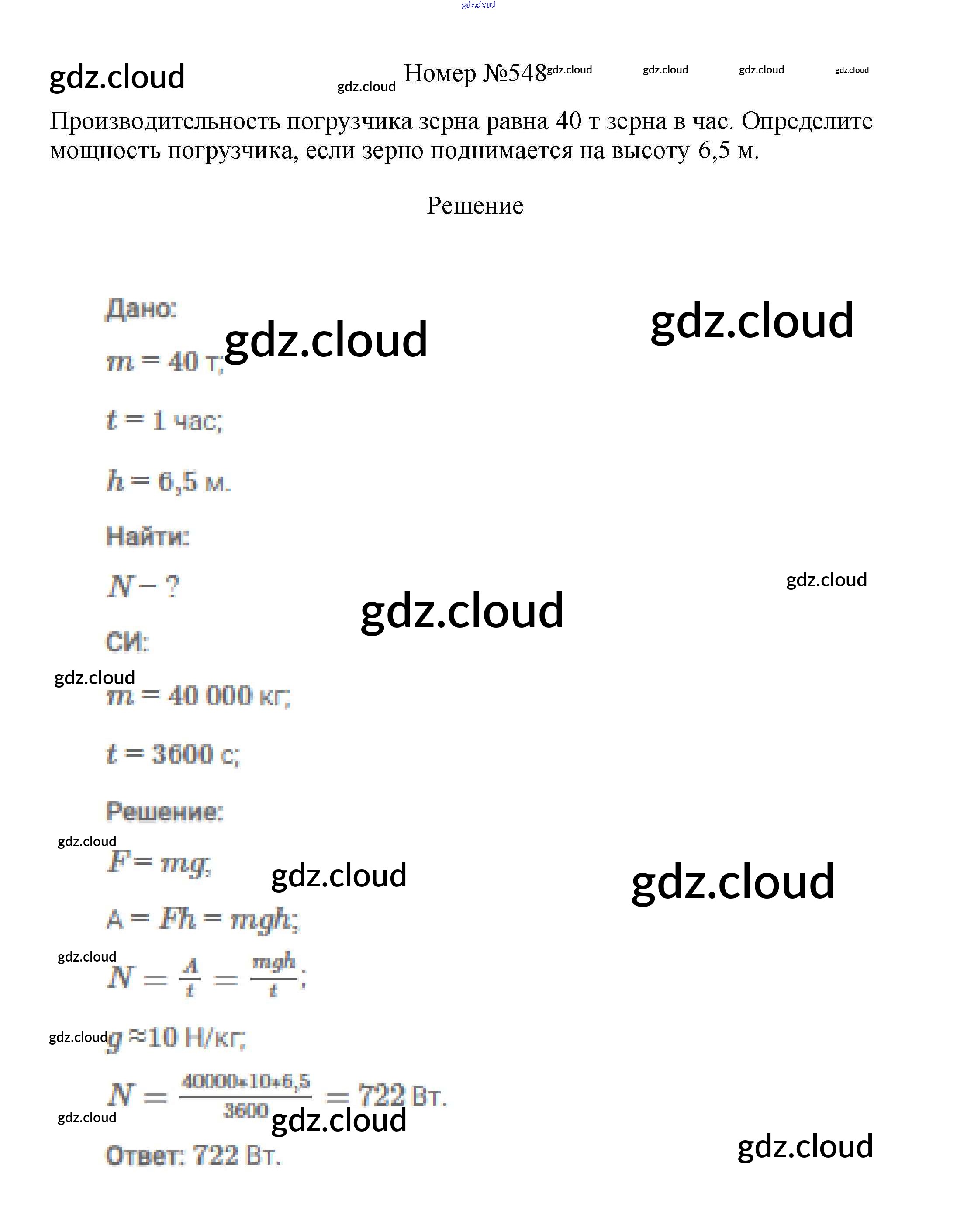 Ответ на задание 548 Сборник вопросов и задач Физика за 7, 8, 9 (седьмой, восьмой, девятый) класс Марон, Позойский Вертикаль 2013