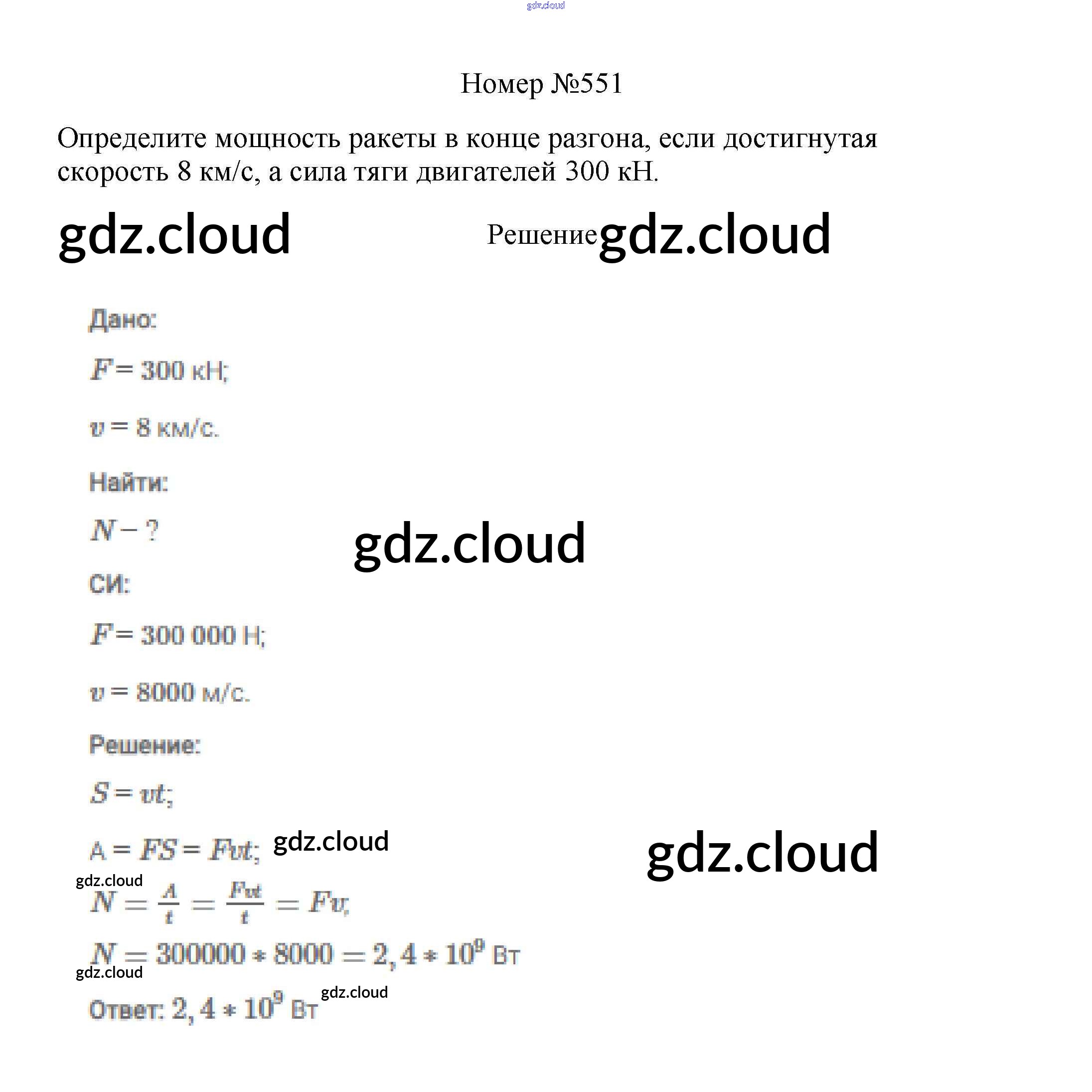 Ответ на задание 551 Сборник вопросов и задач Физика за 7, 8, 9 (седьмой, восьмой, девятый) класс Марон, Позойский Вертикаль 2013