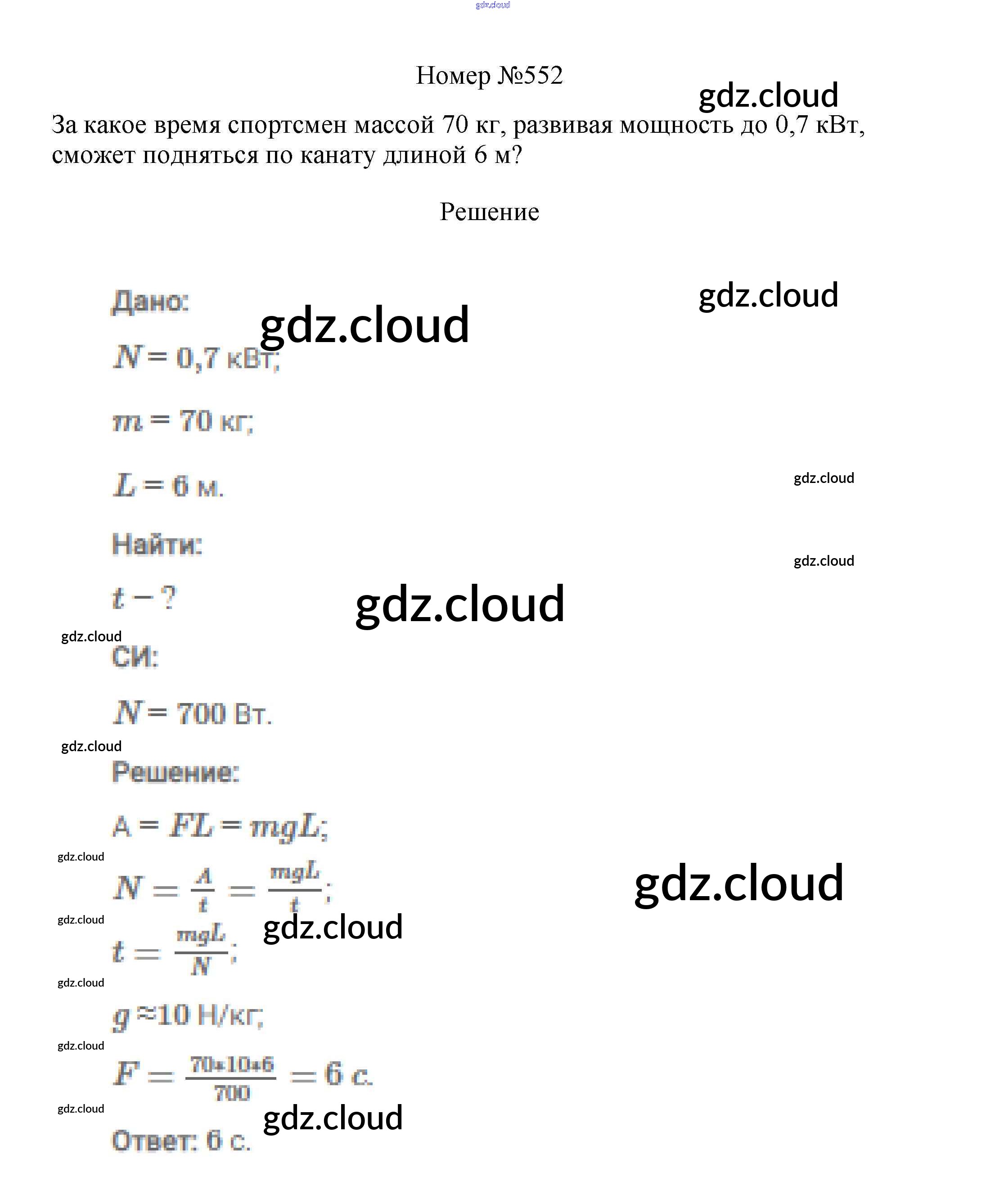Ответ на задание 552 Сборник вопросов и задач Физика за 7, 8, 9 (седьмой, восьмой, девятый) класс Марон, Позойский Вертикаль 2013