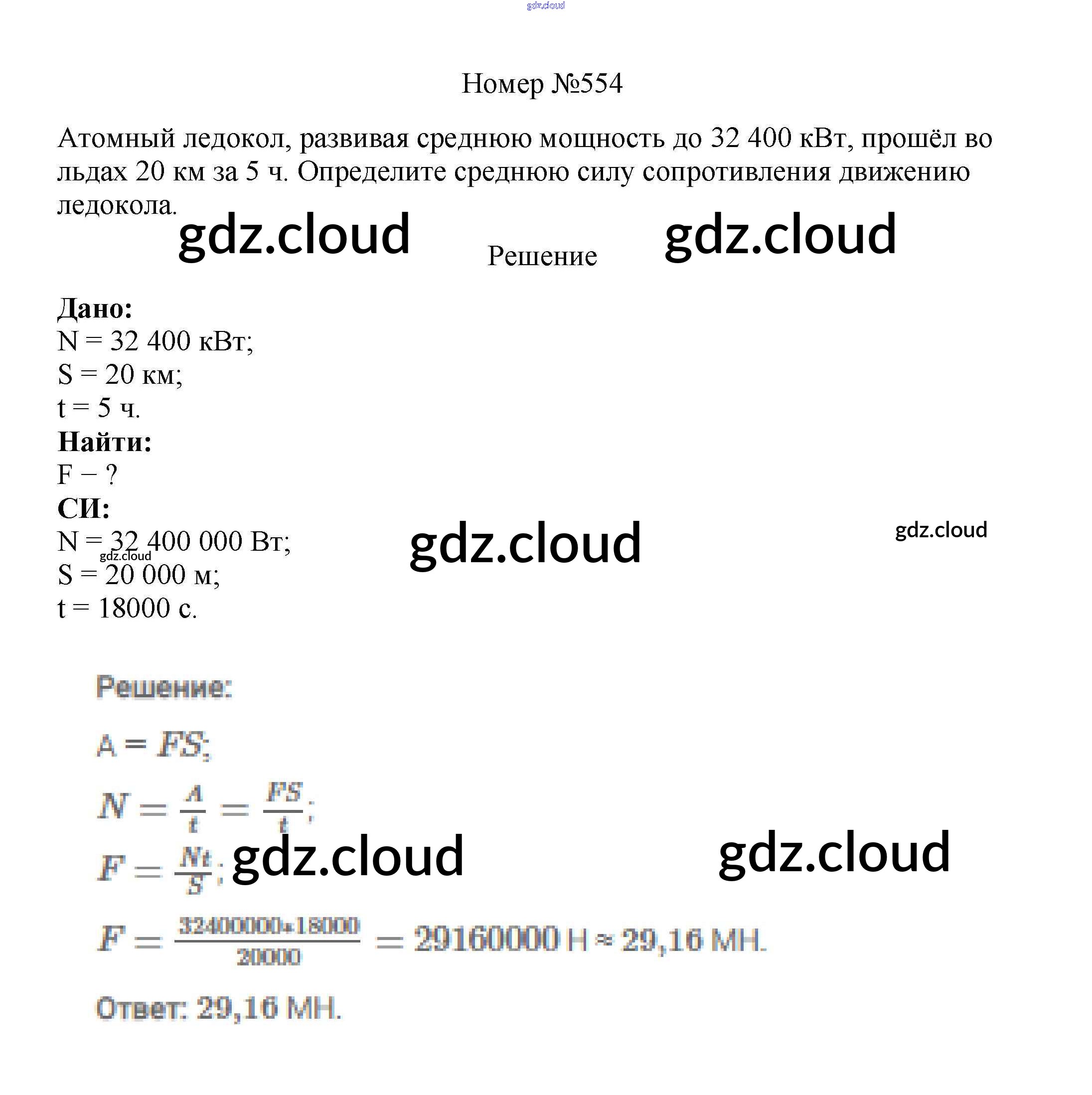 Ответ на задание 554 Сборник вопросов и задач Физика за 7, 8, 9 (седьмой, восьмой, девятый) класс Марон, Позойский Вертикаль 2013
