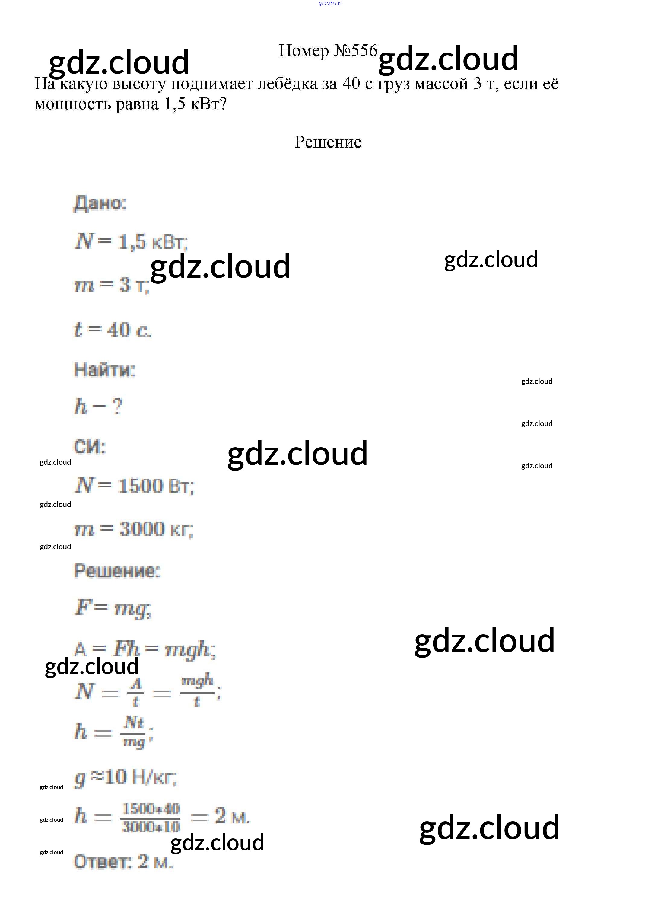 Ответ на задание 556 Сборник вопросов и задач Физика за 7, 8, 9 (седьмой, восьмой, девятый) класс Марон, Позойский Вертикаль 2013