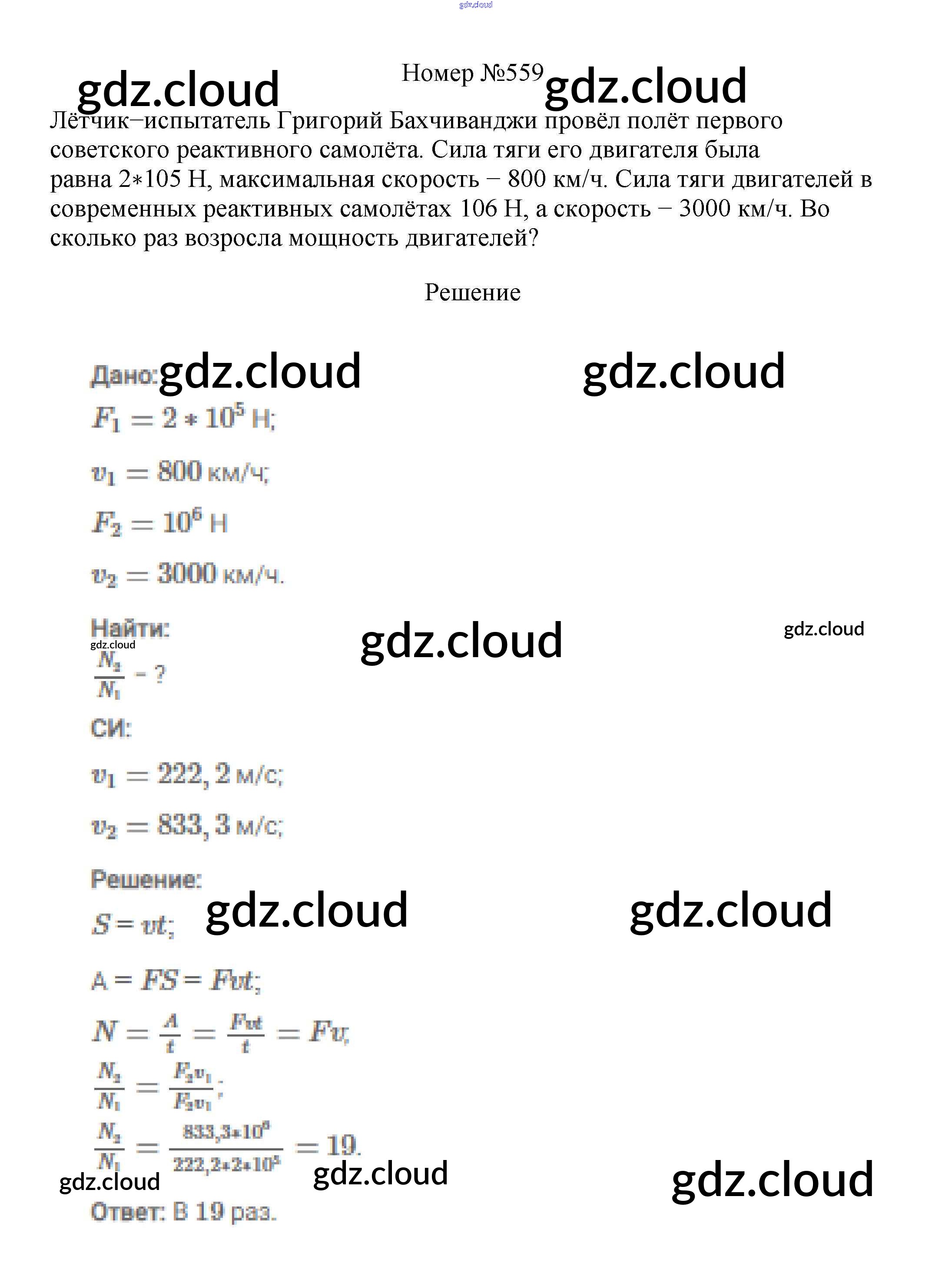 Ответ на задание 559 Сборник вопросов и задач Физика за 7, 8, 9 (седьмой, восьмой, девятый) класс Марон, Позойский Вертикаль 2013