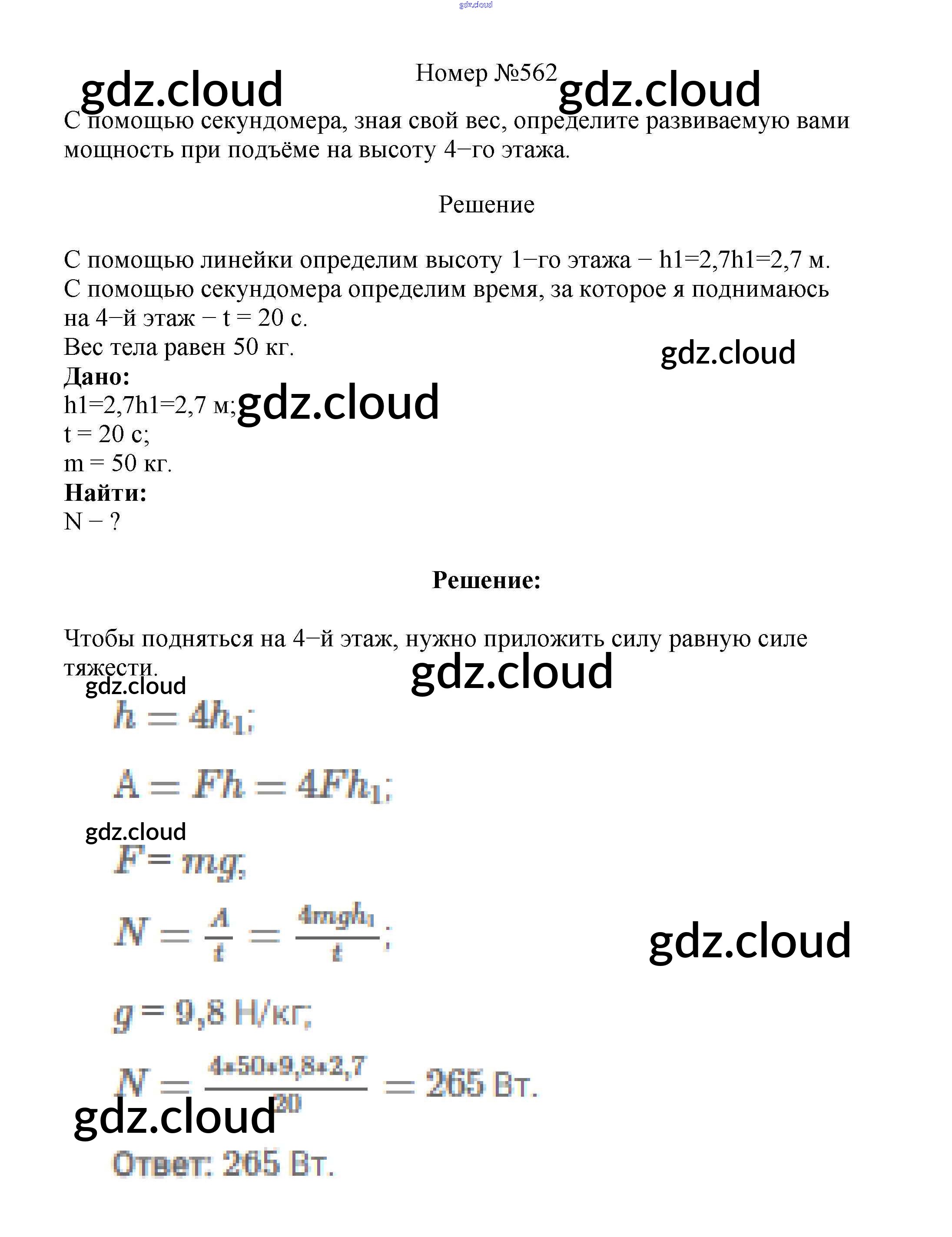 Ответ на задание 562 Сборник вопросов и задач Физика за 7, 8, 9 (седьмой, восьмой, девятый) класс Марон, Позойский Вертикаль 2013