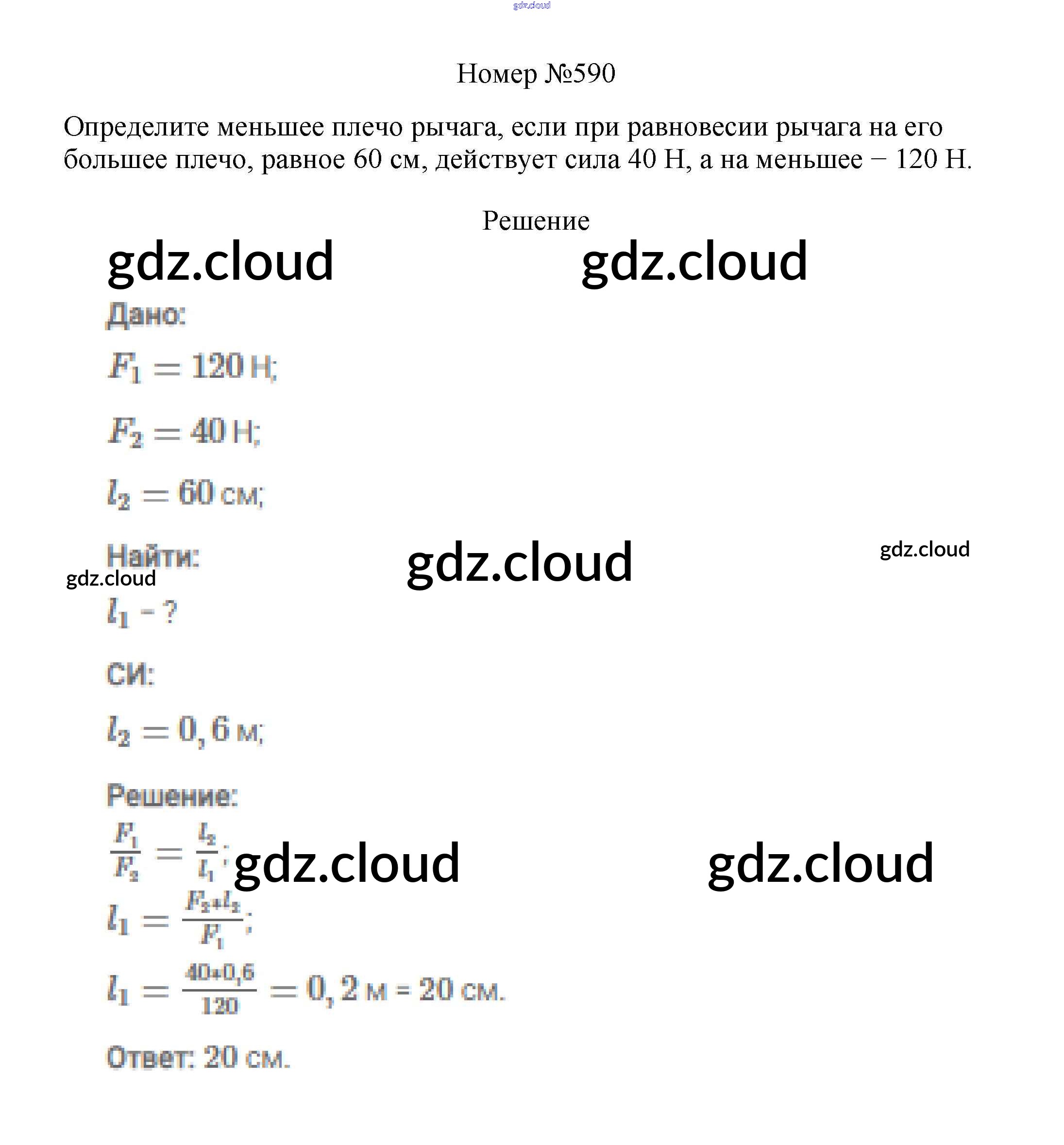 Ответ на задание 590 Сборник вопросов и задач Физика за 7, 8, 9 (седьмой, восьмой, девятый) класс Марон, Позойский Вертикаль 2013