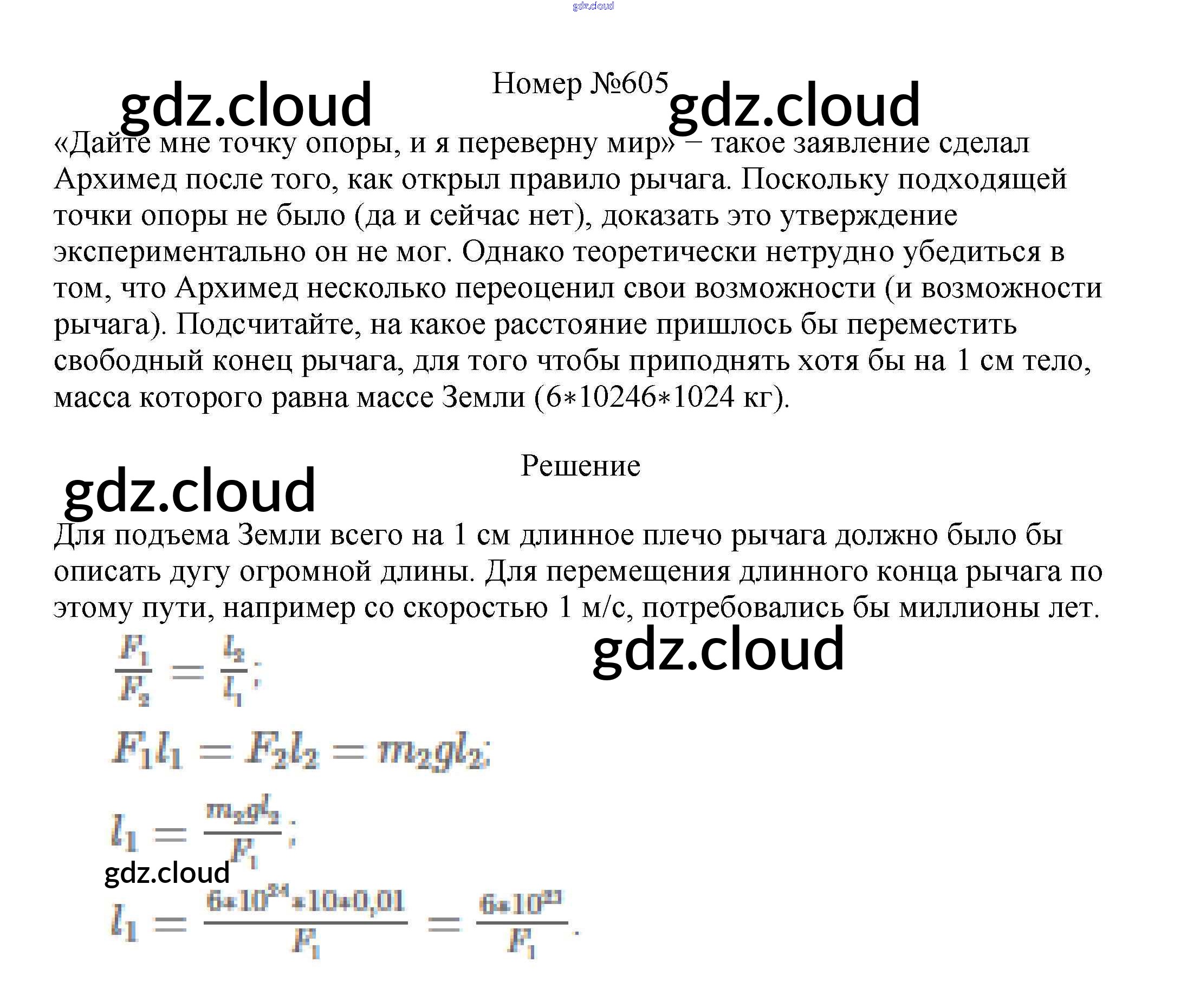 Ответ на задание 605 Сборник вопросов и задач Физика за 7, 8, 9 (седьмой, восьмой, девятый) класс Марон, Позойский Вертикаль 2013