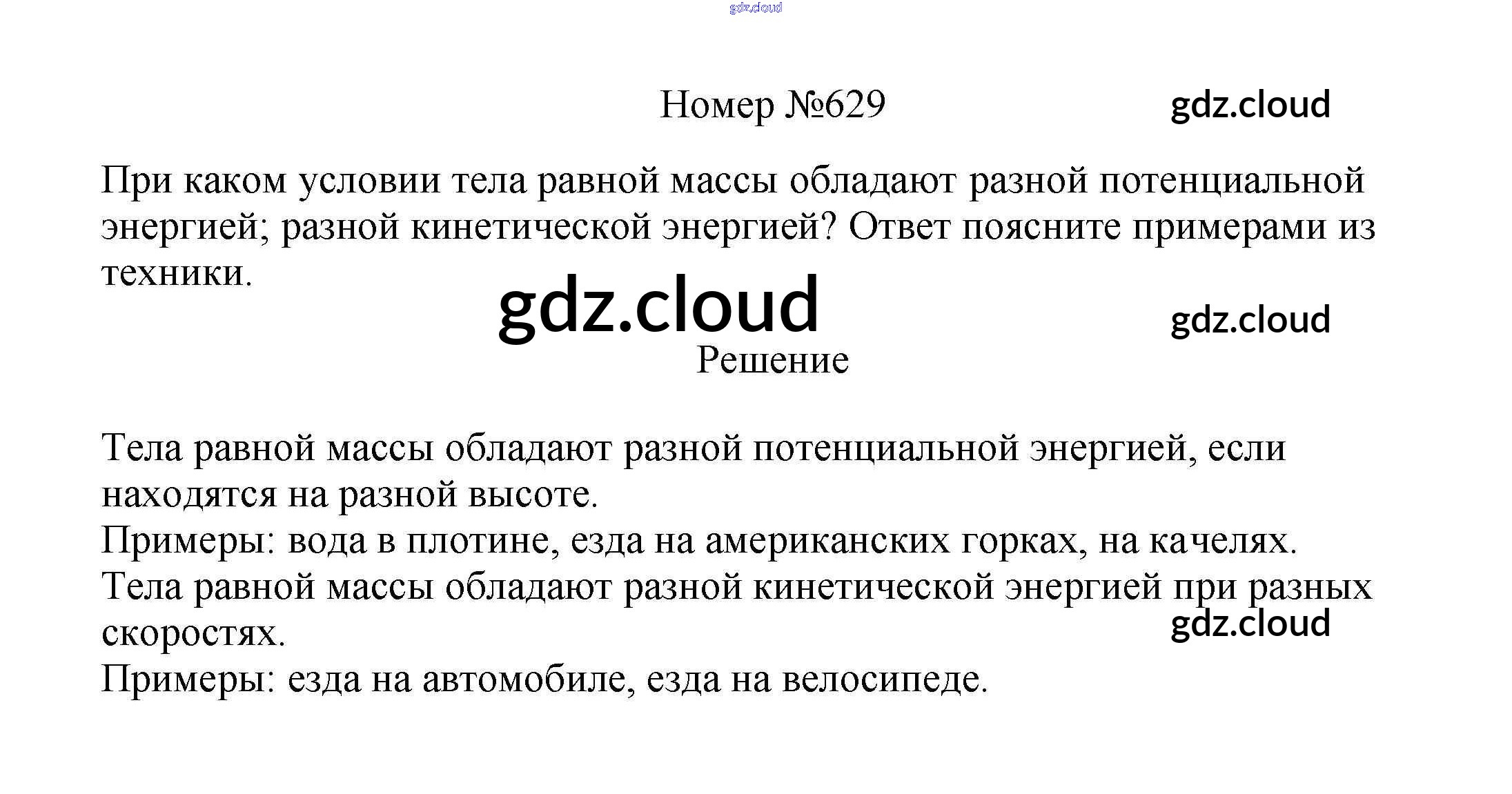 Ответ на задание 629 Сборник вопросов и задач Физика за 7, 8, 9 (седьмой, восьмой, девятый) класс Марон, Позойский Вертикаль 2013